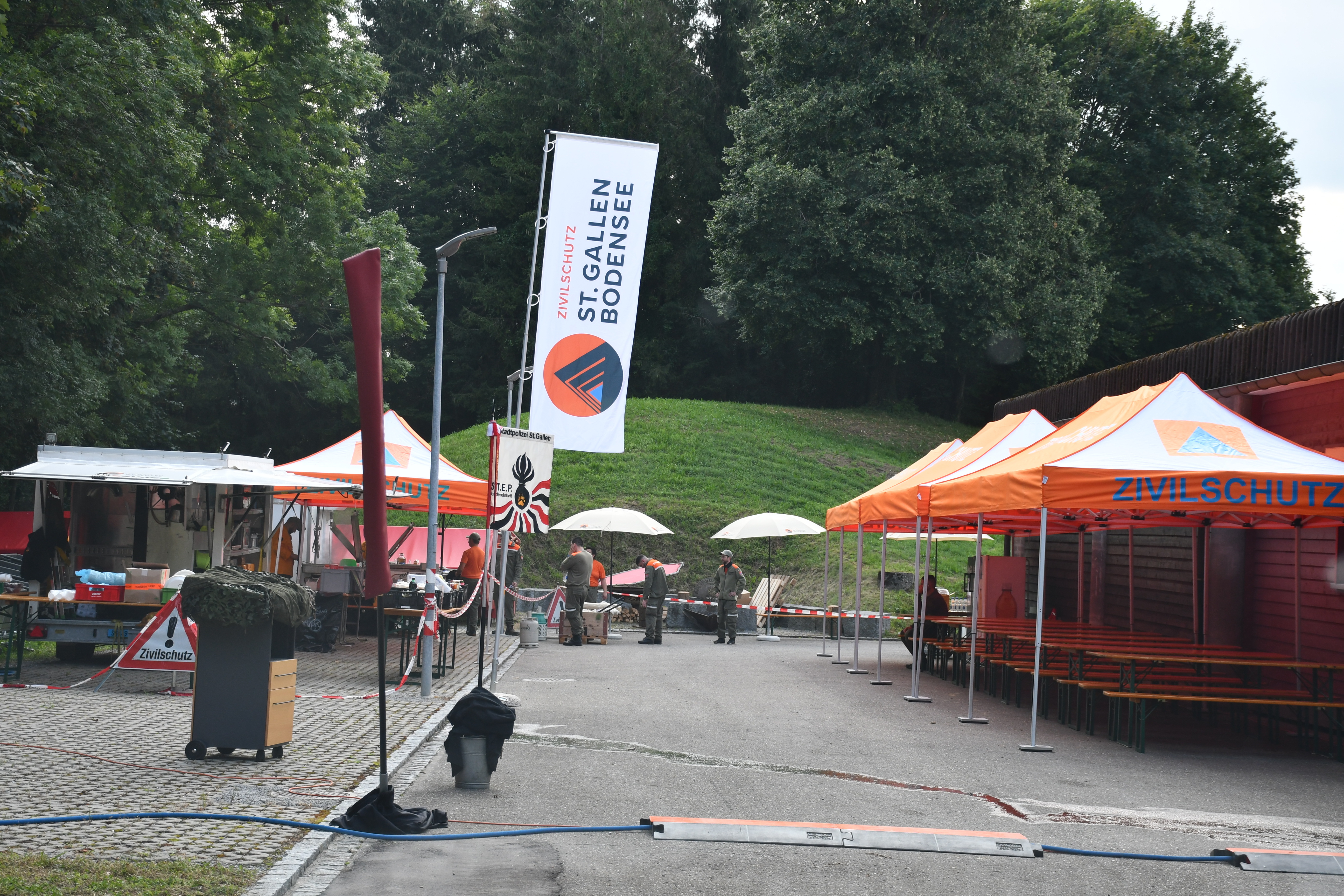 Die Sondereinheit S.T.E.P. der Stadtpolizei St. Gallen feierte im August ihr 50-Jahr-Jubiläum. Der Anlass fand während drei Tagen auf dem Übungsareal Hofen in Wittenbach statt. Dazu wurden an den drei Tagen Vertreter der Behörden, aus der Politik und Polizei-Korps aus der ganzen Schweiz eingeladen. Der Verpflegungszug nutzte diese Plattform für den dritten WK und zeigte sich für die Verpflegung aller Teilnehmenden verantwortlich. Dazu gehörte die Mittags- und Znüniverpflegung sowie ein Apéro-Riche am Donnerstagabend. Insgesamt wurden auf der mobilen Fahrküche über 450 Mahlzeiten durch den Zivilschutz produziert und abgegeben. Erneut konnte der Verpflegungszug eine sehr gute Visitenkarte abgeben.