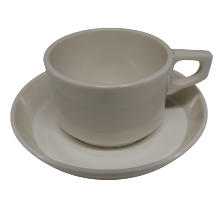 60er Set Kaffeegeschirr bestehen aus je 60 Tassen, Unterteller und Kaffeelöffel. Bestehen aus Ornamin (bruchsicher)