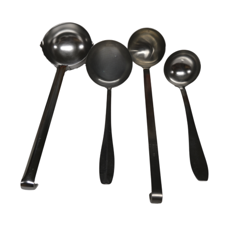 Chromstahlschöpfer sind geeignet um Saucen oder Tee zu schöpfen.