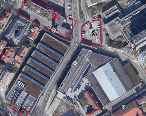 Es stehen auf dem Areal keine Parkplätze zur Verfügung. Parken ist ausschliesslich auf öffentlichen Parkplätzen, in der Parkgarage Cityparking Stadtpark AZSG, Parkhaus OLMA oder auf dem Parkplatz OLMA möglich. Die Parkierung erfolgt auf eigene Kosten.