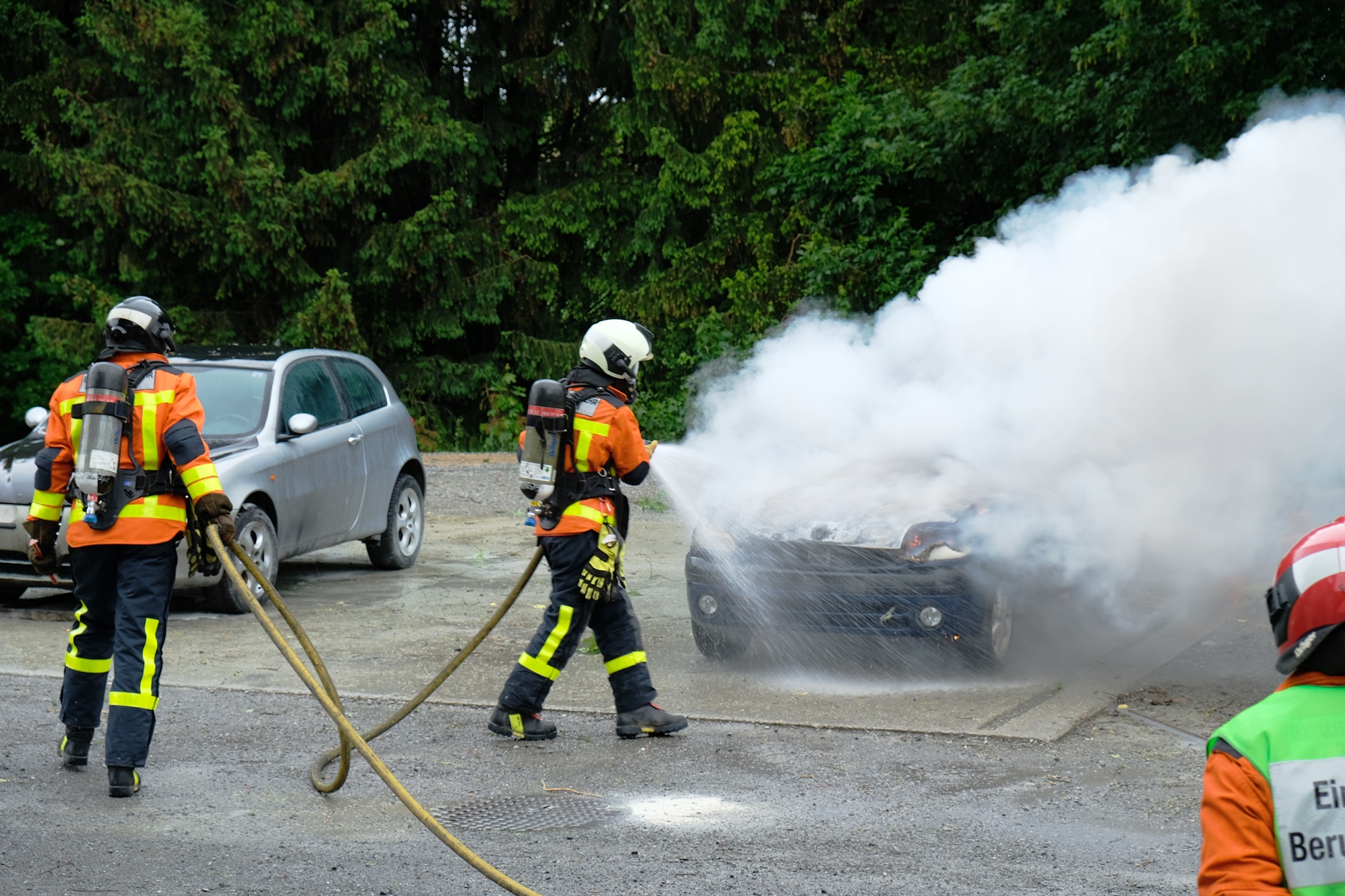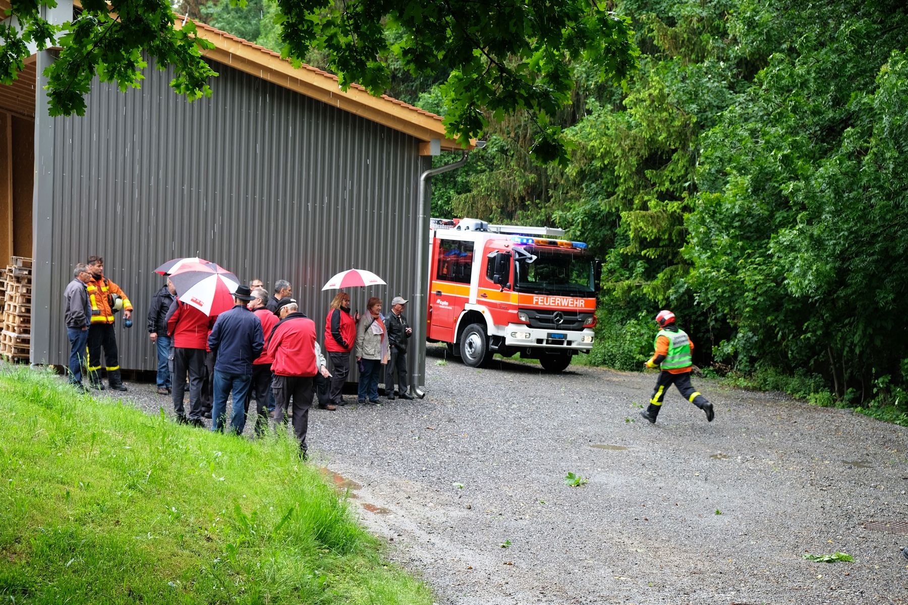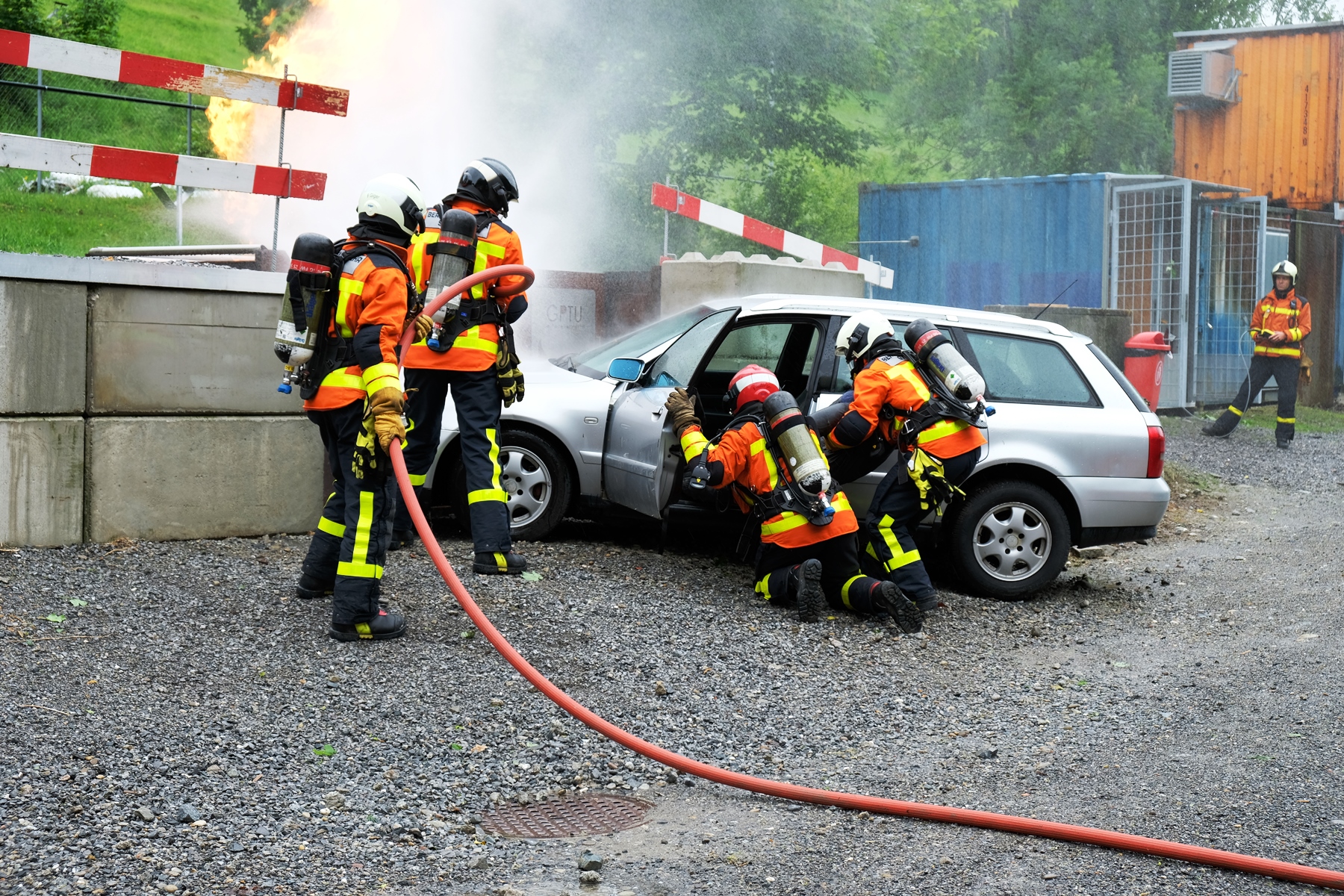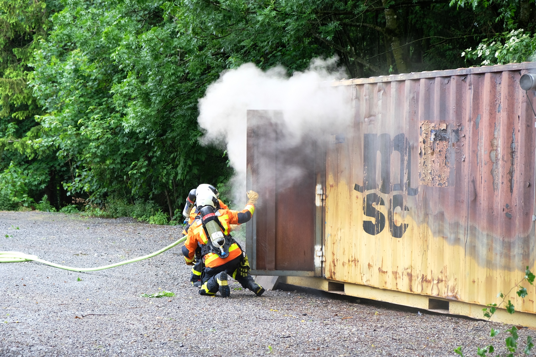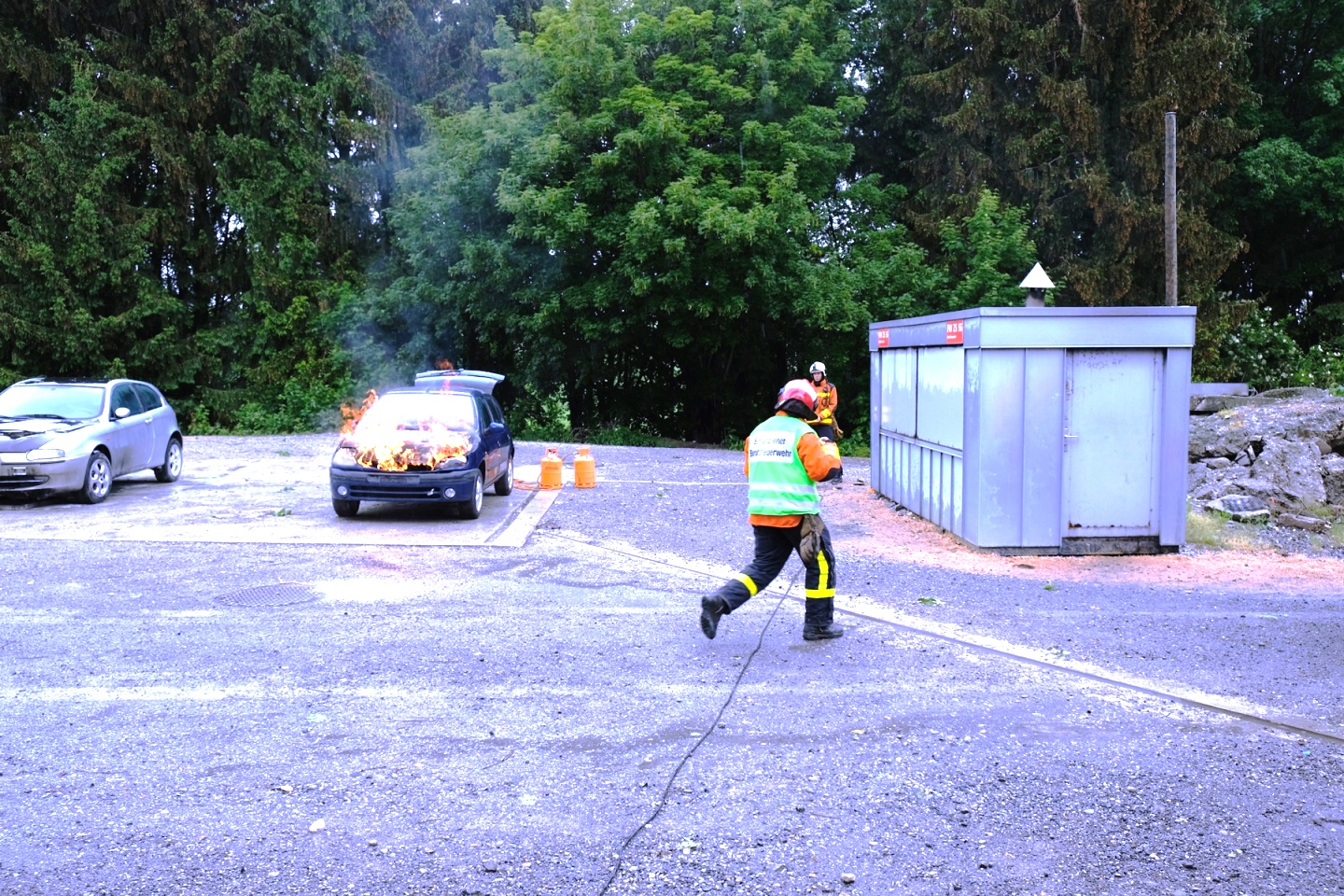 Am Mittwoch, 16. Mai fand das alljährliche Pensioniertentreffen von Feuerwehr und Zivilschutz St.Gallen statt. Trotz regnerischem Wetter fanden sich neun ehemalige Mitarbeitende an der Notkerstrasse ein. Als Nachmittagsprogramm organisierte die Berufsfeuerwehr eine kleine Leistungsschau für ihre ehemaligen Kollegen. Im Übungsgelände Hofen wurden dazu verschiedene Einsätze wie Auto- und Garagenbrände demonstriert. Zudem konnten die Gäste den neuen Geländestapler von FWZSSG begutachten und im Korb der Autodrehleiter die Aussicht über das Hofengelände geniessen. Als Abschluss des Tages fanden sich alle in der Fahrzeughalle der Berufsfeuerwehr ein, wo vom Dienstzug bereits ein gutes Nachtessen vorbereitet wurde. Bei Wurst, Salat und guten Gesprächen liessen die ehemaligen und aktuellen Mitarbeitenden von Feuerwehr und Zivilschutz den spannenden und gemütlichen Nachmittag ausklingen.