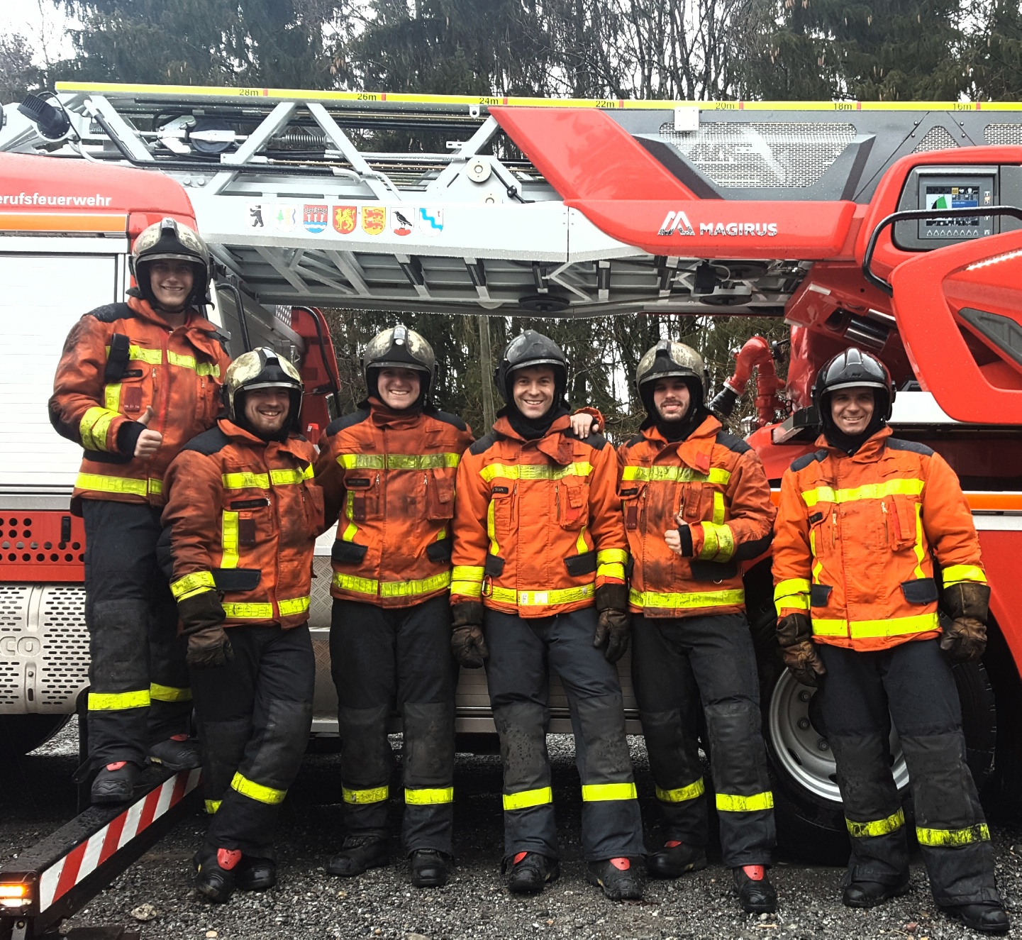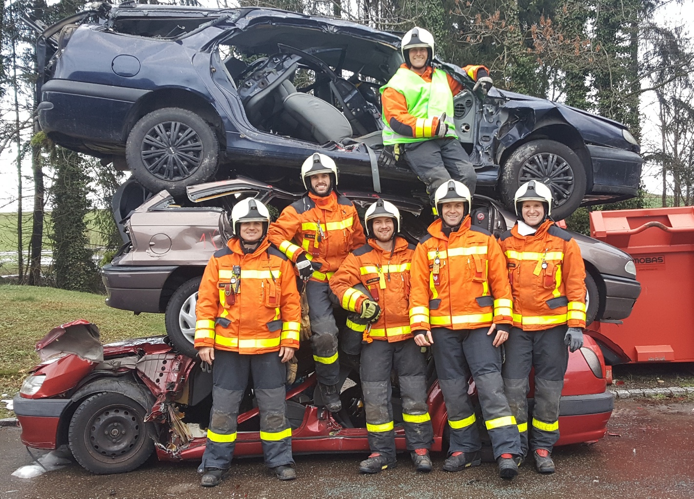Die vier Auszubildenden der Berufsfeuerwehr Dennis Klein, Florian Giger, Mathias Müller und Martin Rupp haben im Rahmen ihres Praktikums eine intensive Ausbildungswoche absolviert. Die Auszubildenden konnten ihr erlerntes Fachwissen in den Bereichen Strassenrettung, Brandbekämpfung , Absturzsicherung, Präklinische Patientenversorgung und vorbeugender Brandschutz festigen.