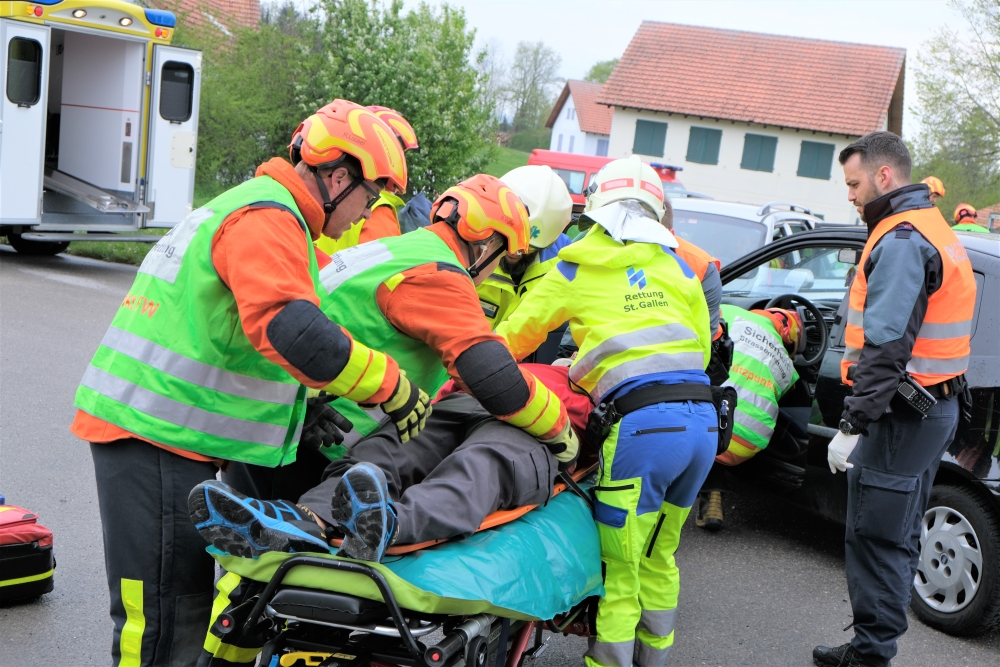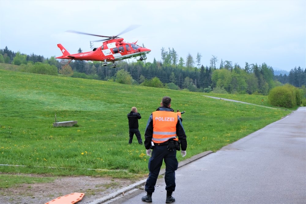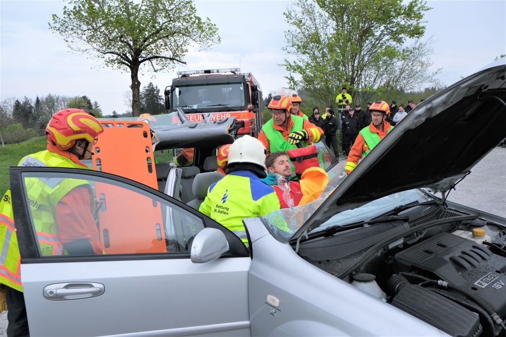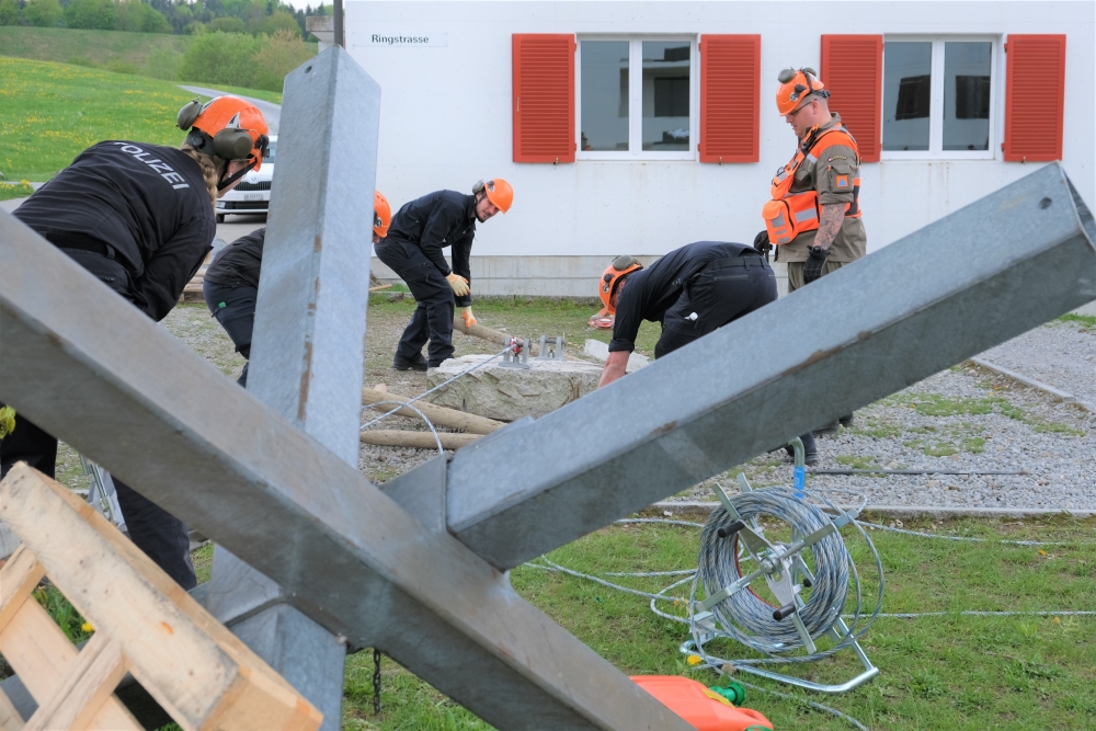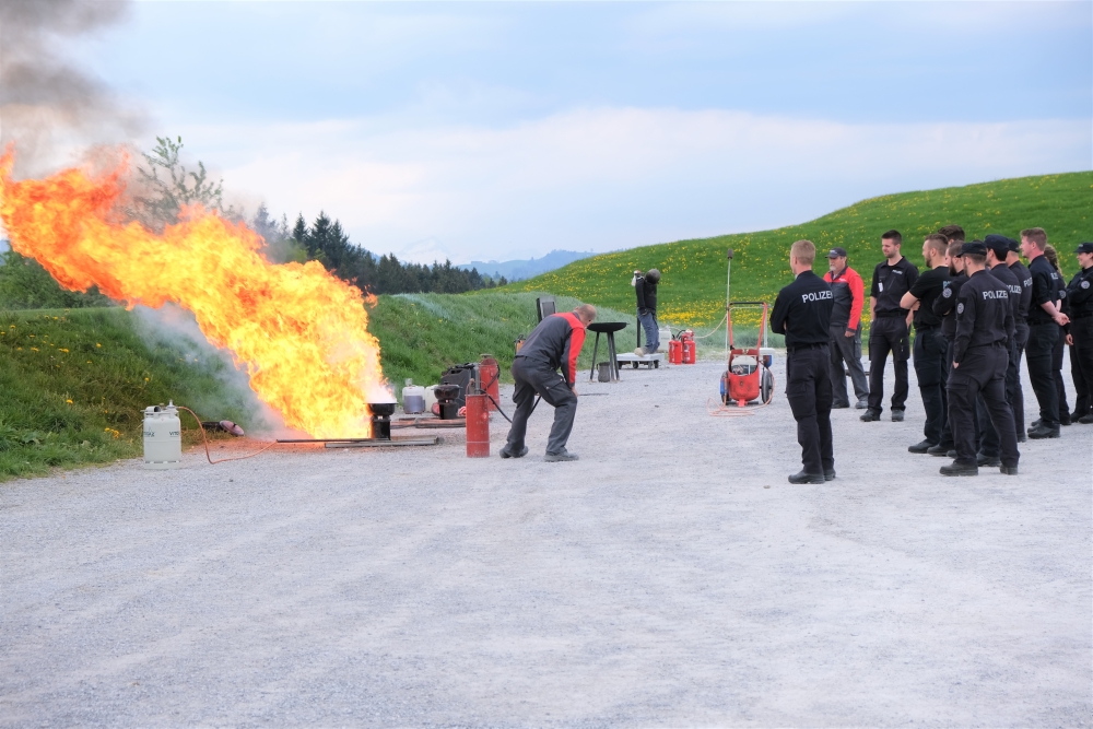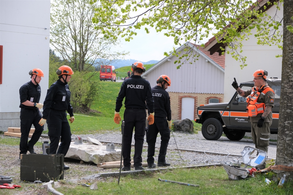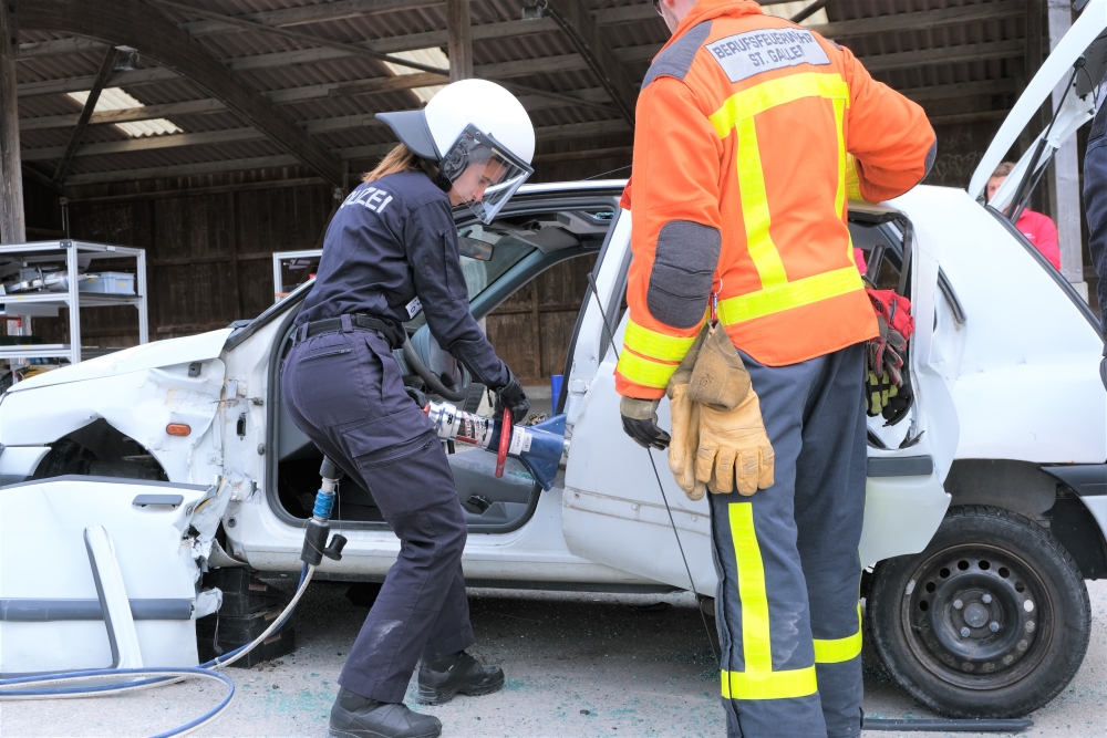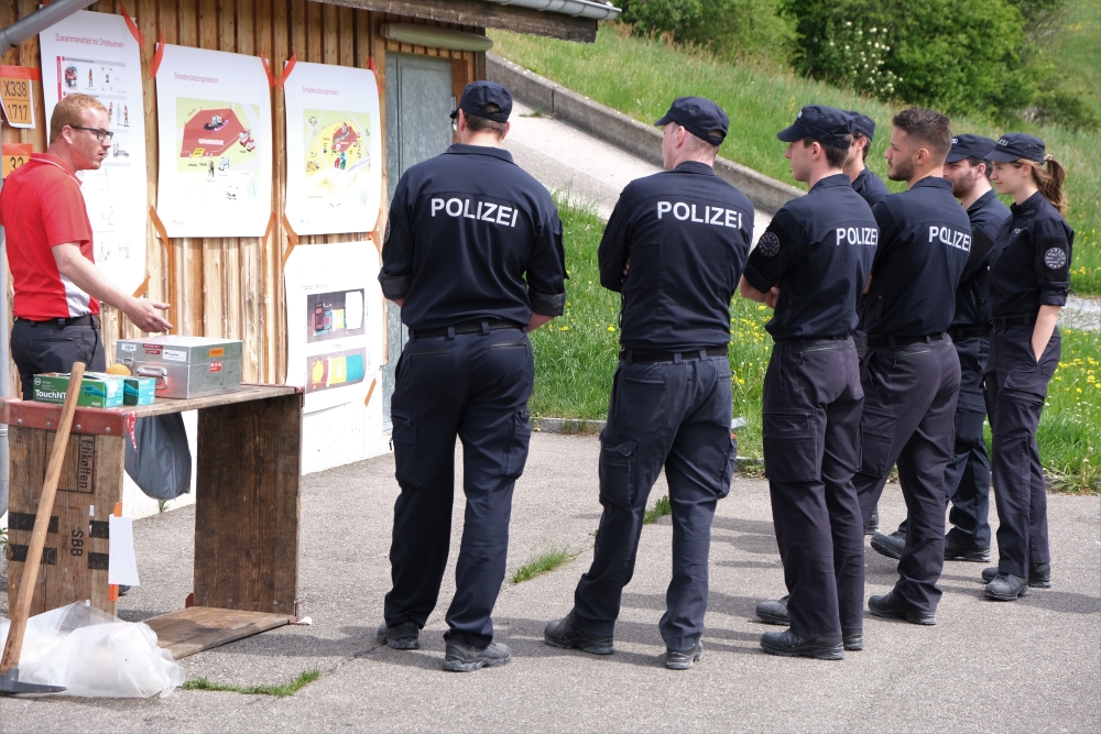 An verschiedenen Posten konnten die angehenden Polizistinnen und Polizisten praktische Arbeiten durchführen und sich über Berührungspunkte austauschen. Die Posten wurden durchgeführt vom Amt für Militär und Zivilschutz, der Rega Schweiz, der Feuerwehr Region Wil, der Rettung St.Gallen und von Feuerwehr und Zivilschutz St.Gallen.