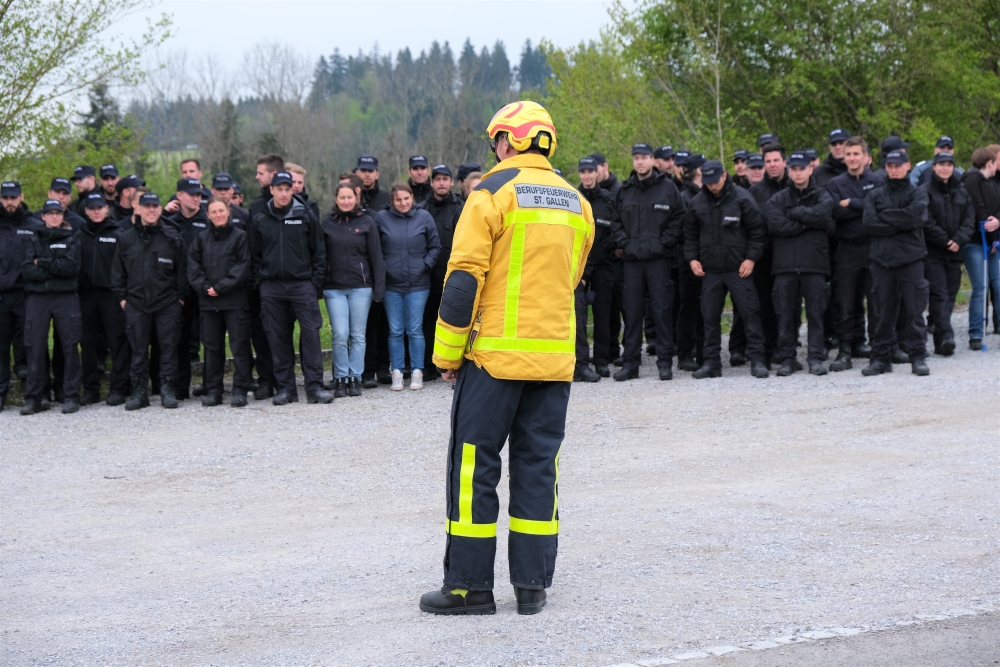 Rund 90 Polizei-Aspirantinnen und Aspiranten der Polizeischule Ostschweiz nahmen am diesjährigen Bevölkerungsschutz-Tag teil. Ziel dieses eintägigen Kurses ist, dass die Aspirantinnen und Aspiranten die Mittel und Möglichkeiten der Partnerorganisationen des Bevölkerungsschutzes kennenlernen.