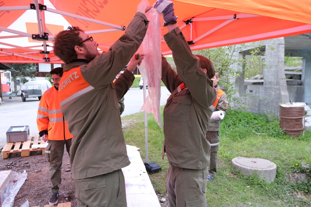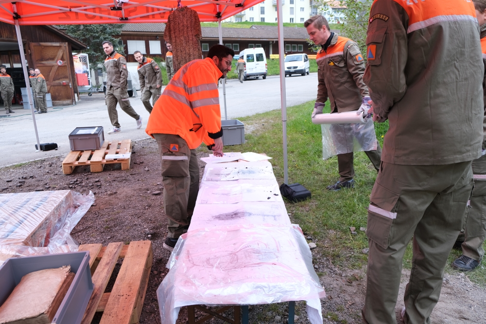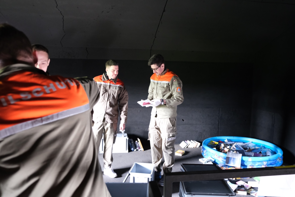 Vergangene Woche führte die Kulturgüter-Formation einen WK auf dem Übungsgelände in Teufen (AR) durch. Trainiert wurde ein Wassereinbruch in ein Archiv mit Kulturgütern aus verschiedensten Materialien.