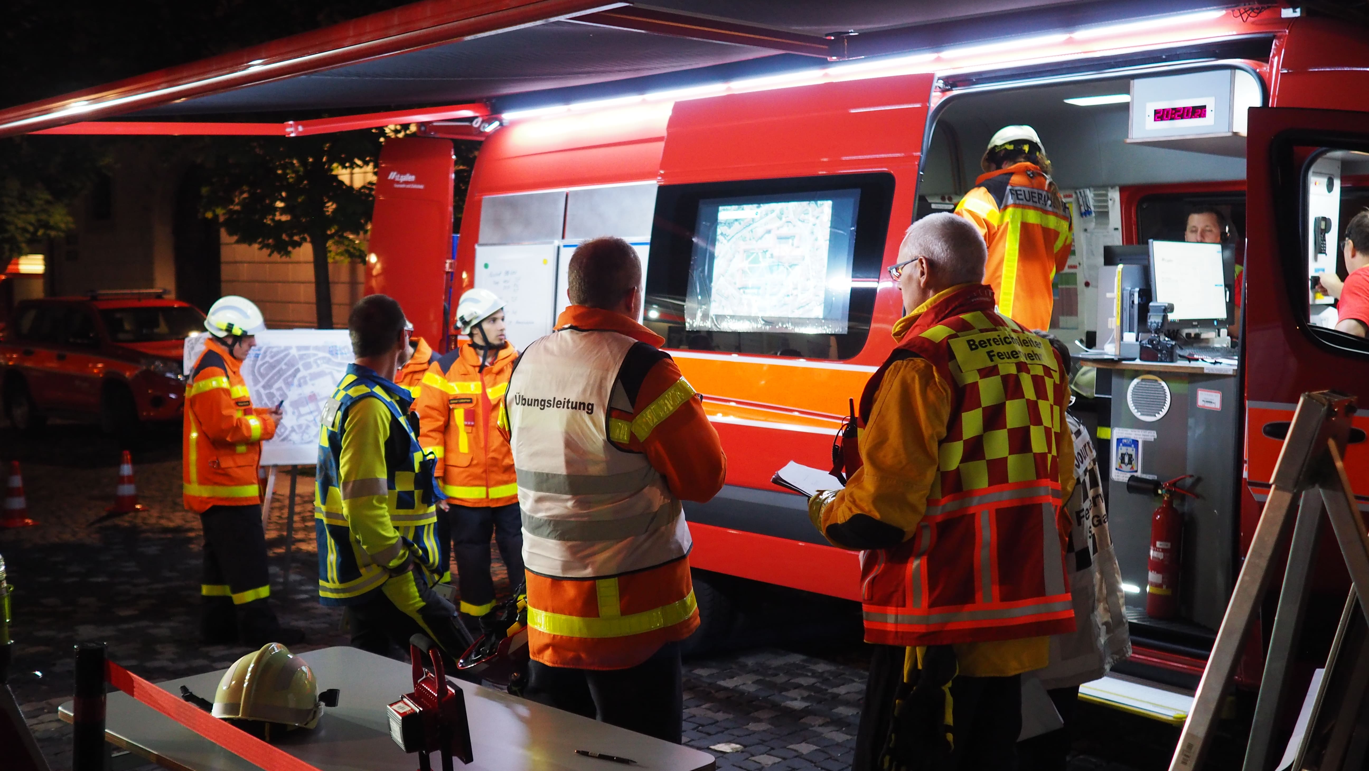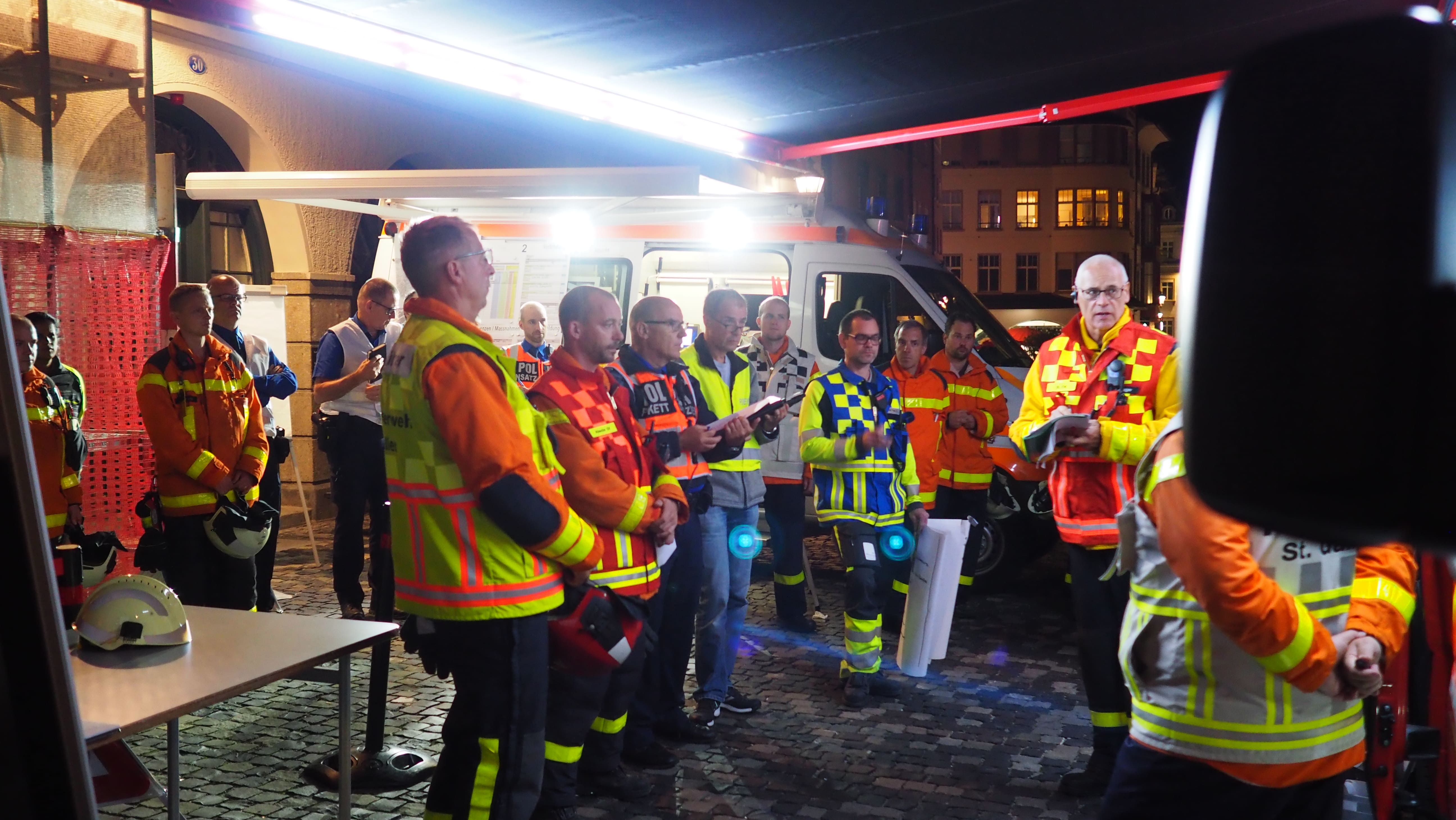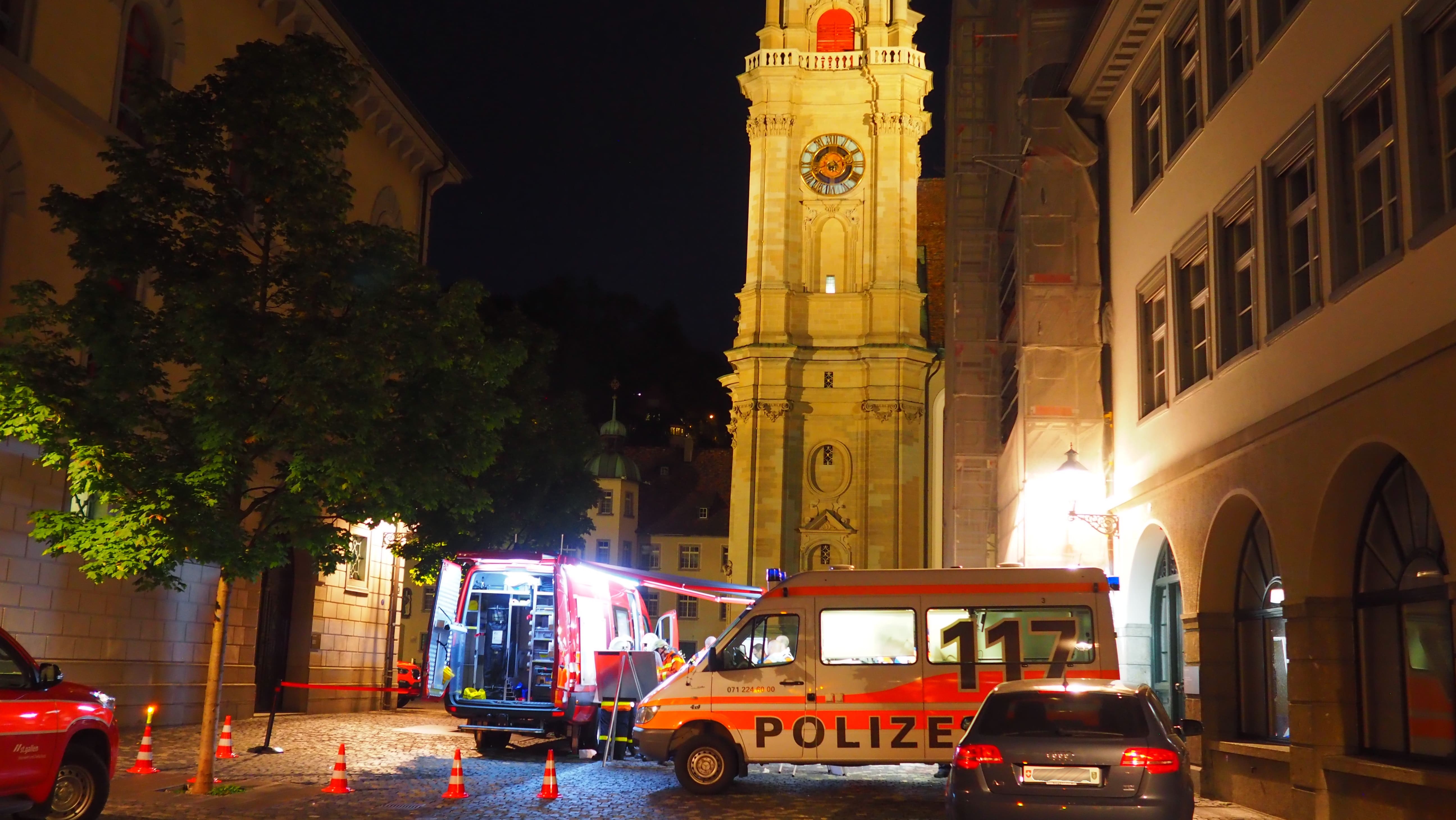 Am Dienstagabend (17.09.2019) fand eine grossangelegte Stabsübung auf dem Gelände der Stiftskirche St.Gallen statt. Ausgangslage war, dass im Dachstock, des zum UNESCO-Weltkulturerbe zählende Kirchengebäudes, ein Brand ausgebrochen ist. Oberste Priorität hätte bei einem solchen Ereignis die Evakuation und Rettung der sich im Gebäude befindlichen Personen. Zeitgleich würden weitere Einsatzkräfte mit einer aggressiven Brandbekämpfung beginnen. Die grösste Herausforderung bei diesem Szenario bestünde in der Koordination der aufgebotenen Einsatzkräfte.