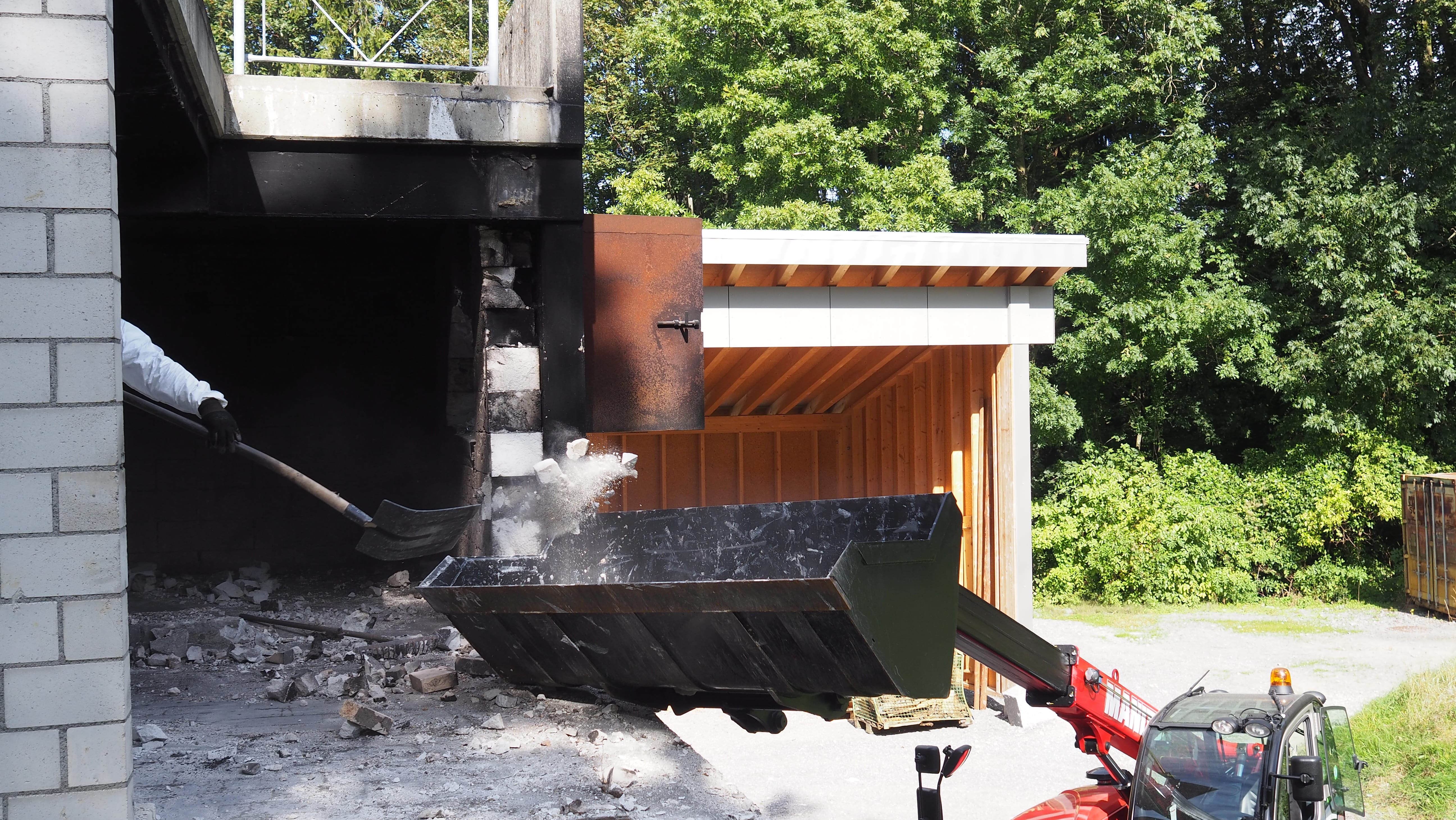 Dafür wird die alte, hitzebeständige Isolation durch den Zivilschutz entfernt und anschliessend wieder neu aufgebaut. Zudem wird das im Brandhaus abgegebene und nicht verdampfte Löschwasser zentral gesammelt und kann abgepumpt werden. Eine potentiellen Belastung der Umwelt wird dadurch vorgebeugt. Des Weiteren gestaltet sich die Raumaufteilung nun neu verändert und ermöglicht verschiedene Trainingsmöglichkeiten wie den Kamineffekt im Treppenhaus.