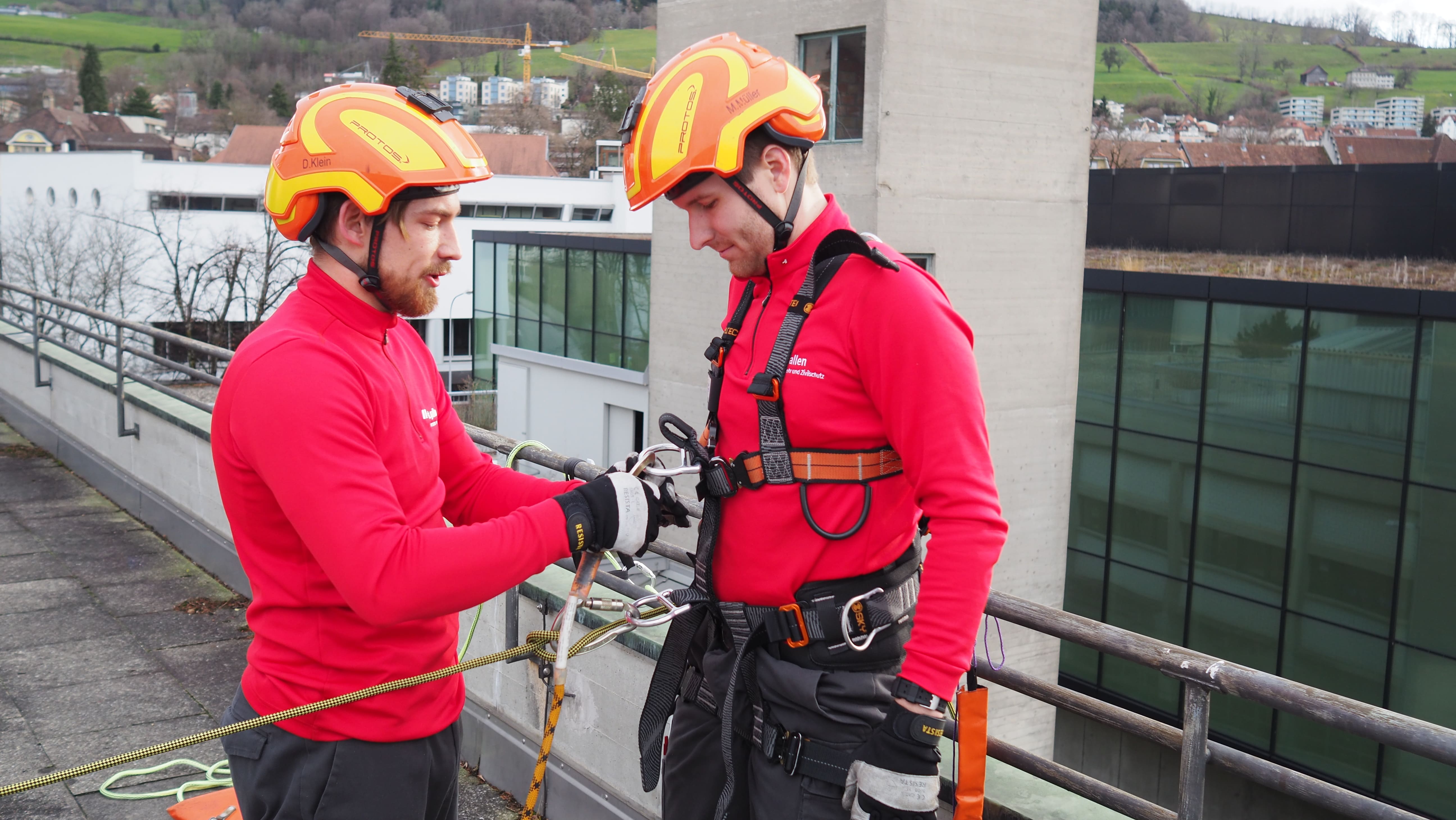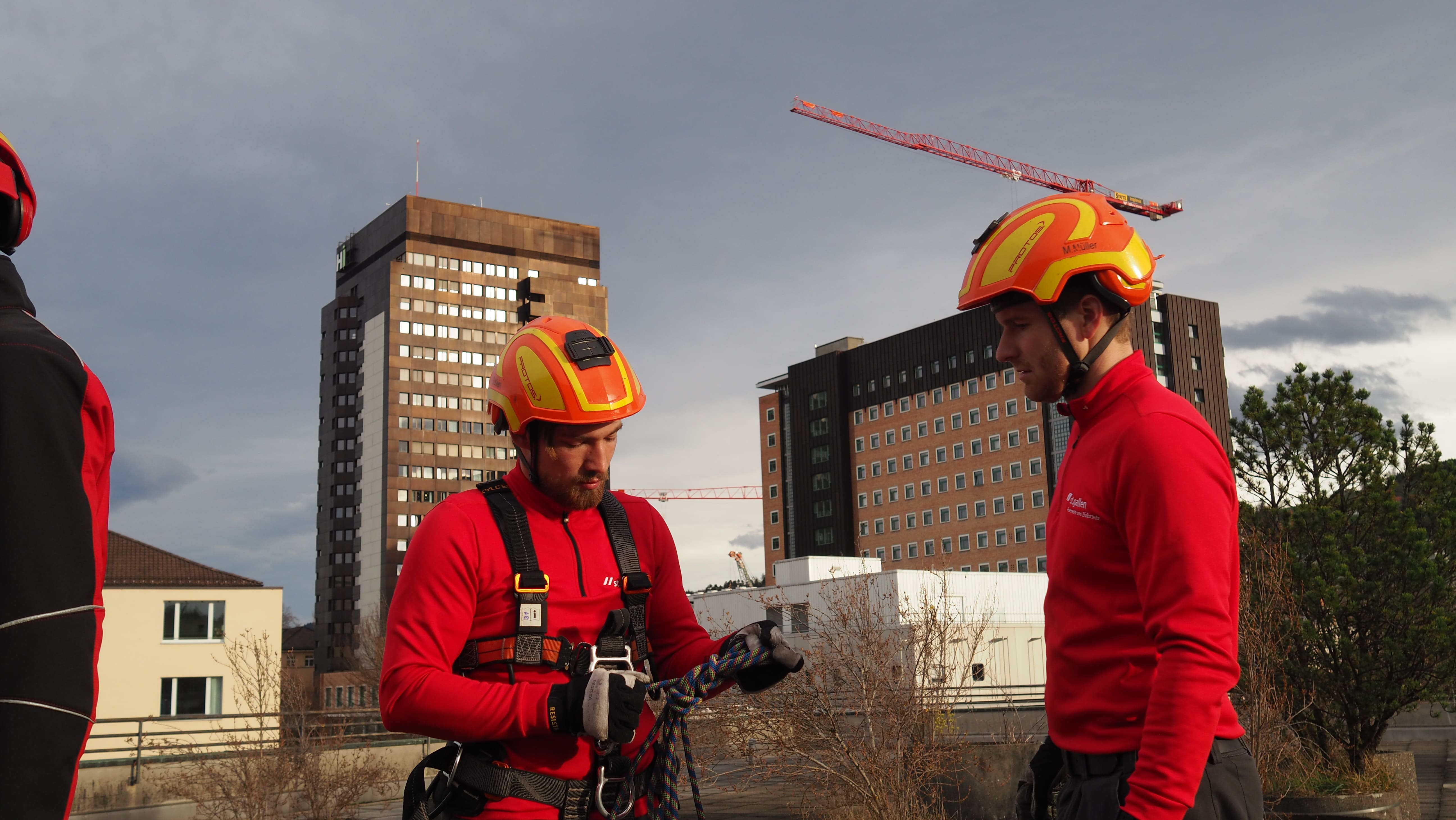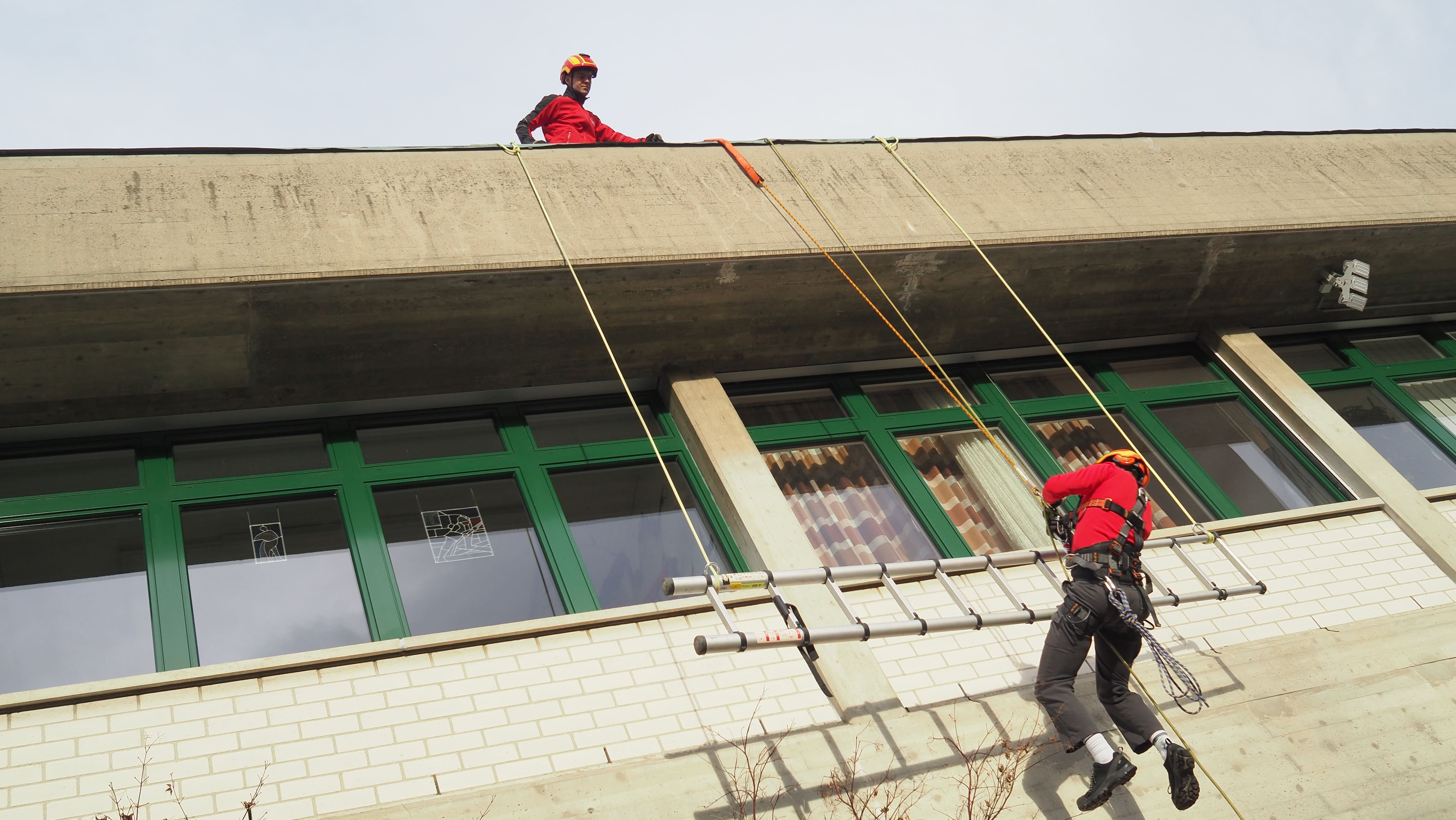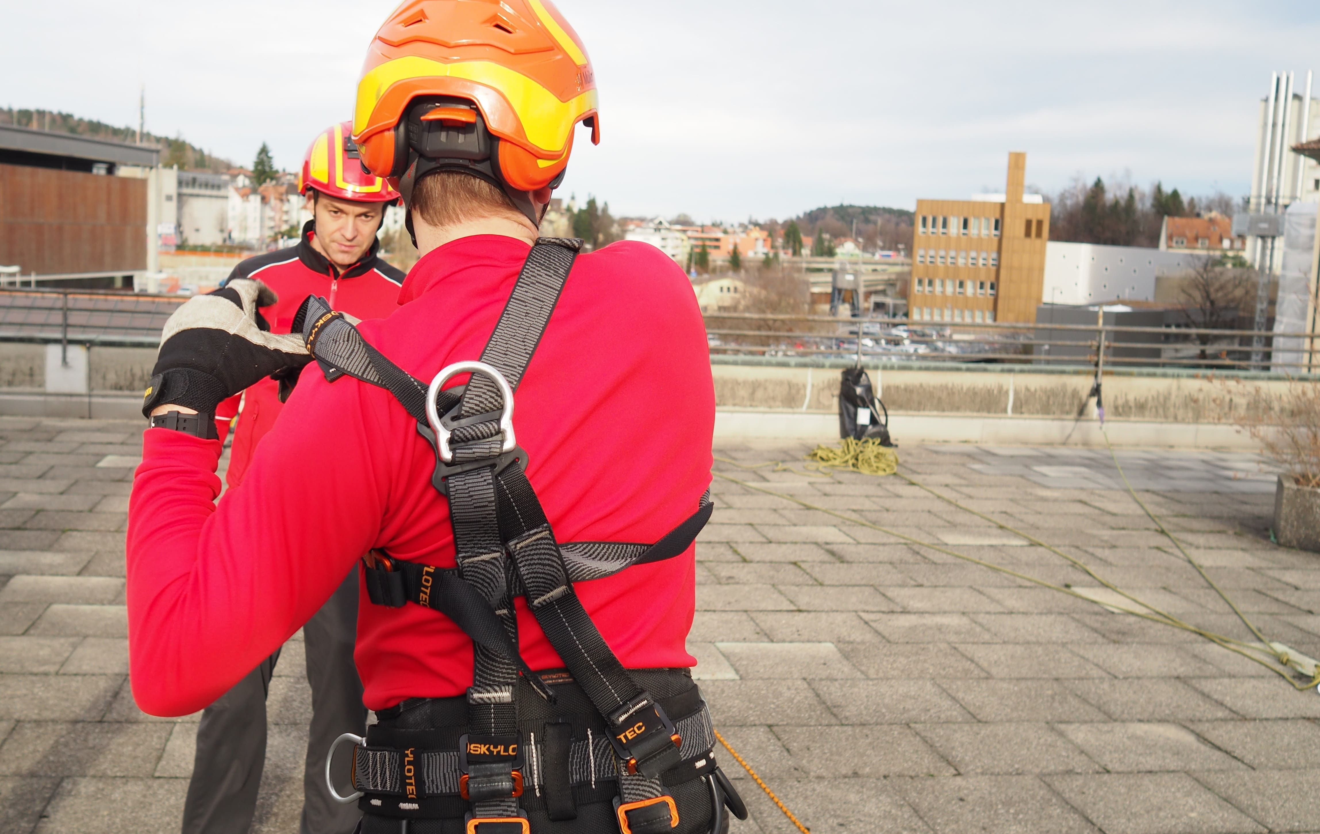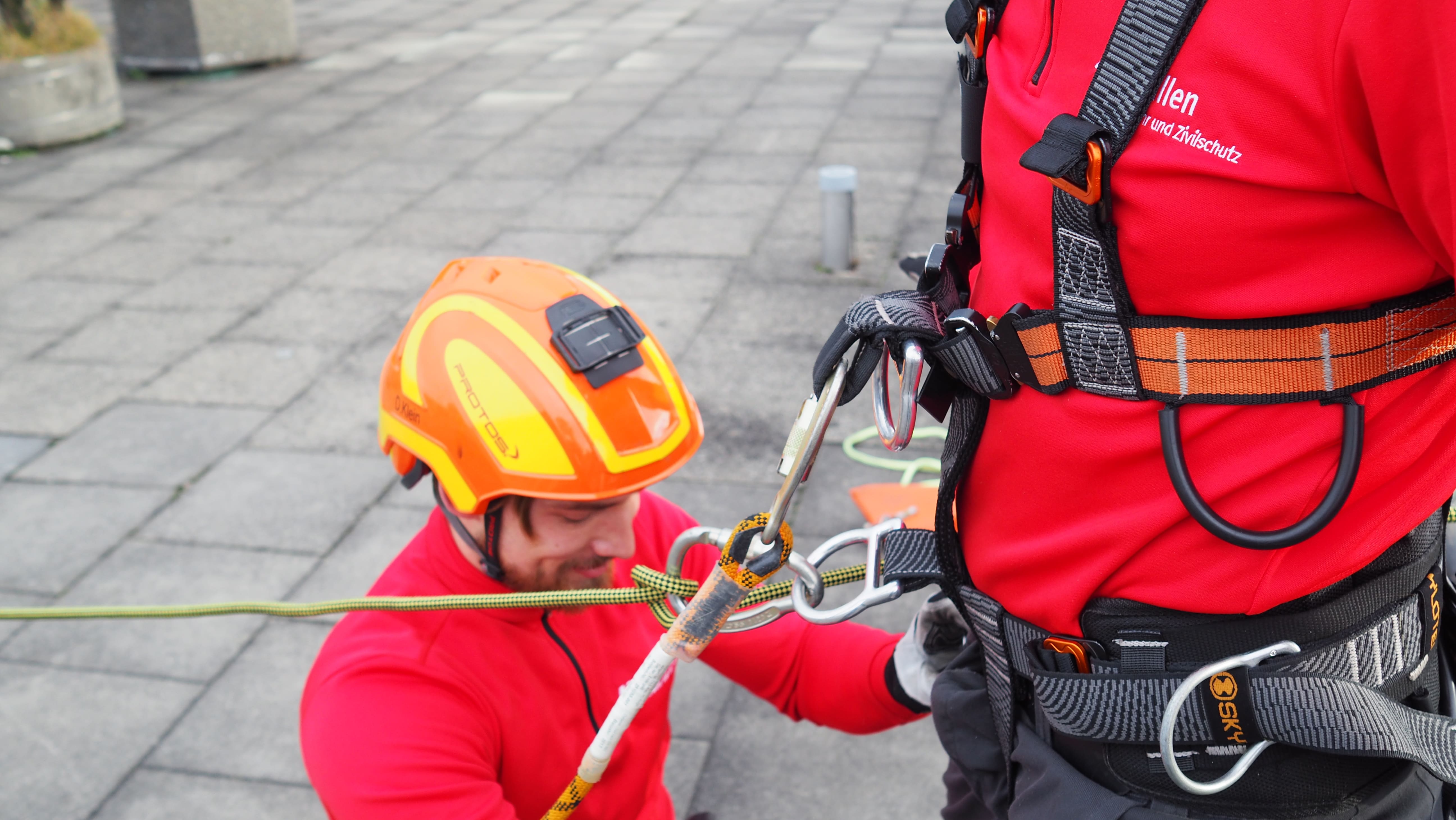 Am Dienstagnachmittag (17.12.2019) stand für die beiden Rekruten der Berufsfeuerwehr St.Gallen die Vertiefung von Kentnissen im Bereich Absturzsicherung im Fokus. Ziel war es, den korrekten und sicheren Umgang mit den verschiedenen Gerätschaften für die Rettung aus der Höhe zu trainieren. Wert wurde besonders auf die korrekte Umsetzung des GKKG.com (Gurte, Knoten, Karabiner, Gerät und Kommunikation) gelegt.
