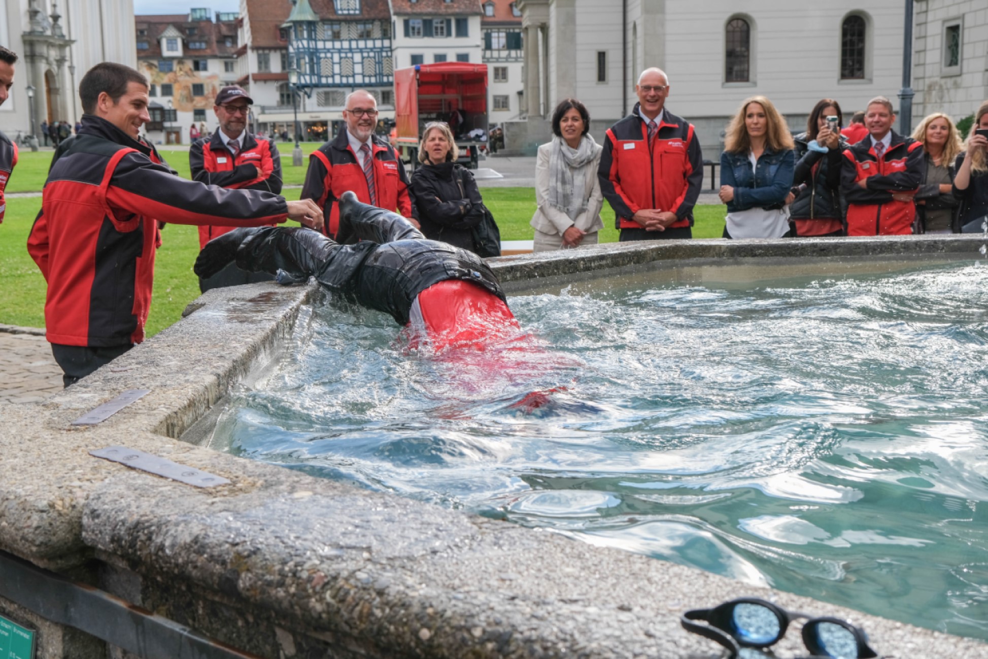 Im Anschluss führten die Ausbildner der Absolventen die "Taufe" durch. Dazu mussten die neuen Berufsfeuerwehrmänner verschiedene Aufgaben unter erschwerten und vor allem nassen Bedingungen lösen. Nach dem offiziellen Teil wurde der Abend mit einem feinen Apéro und schönen Gesprächen beendet.