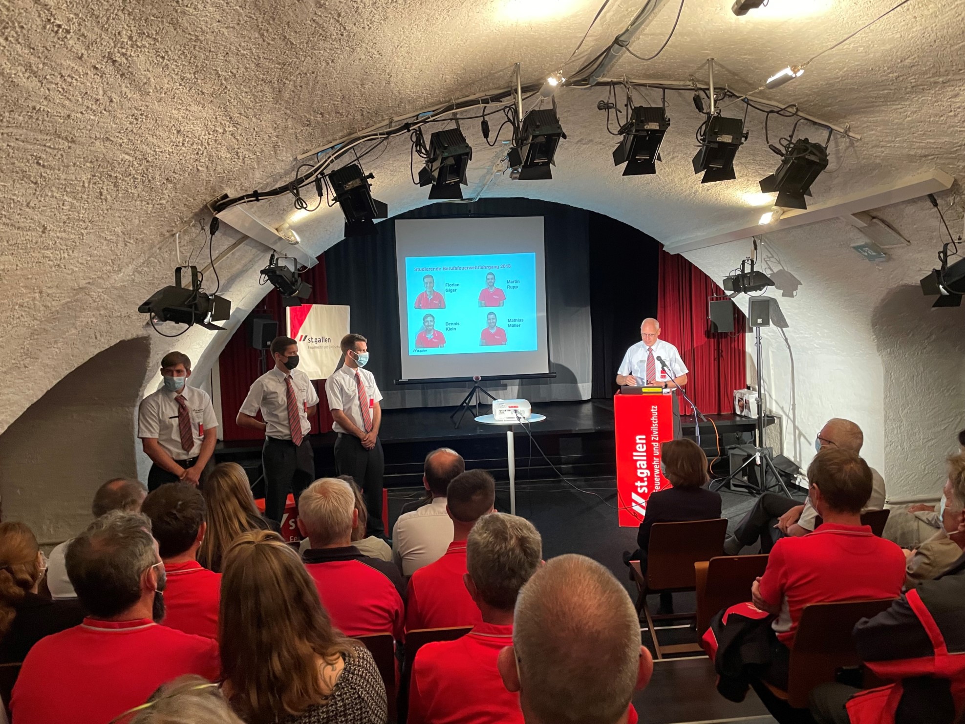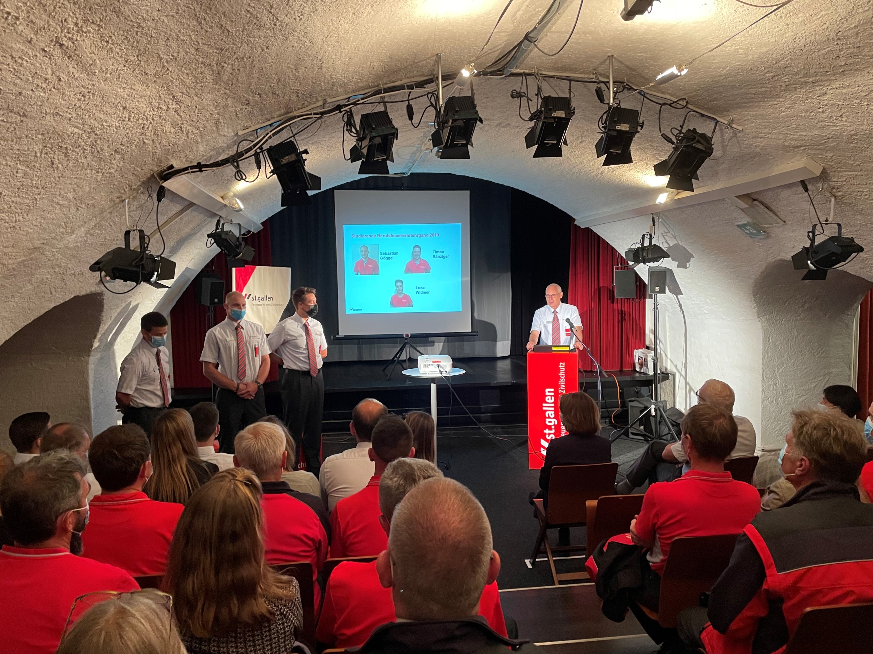 Aufgrund der Corona-Pandemie fiel die Lehrgangsabschlussfeier des Lehrgangs 2018 letztes Jahr aus und wurde gestern mit dem Lehrgang 2019 nachgeholt. Stadträtin Dr. Sonja Lüthi, Vorsteherin der Direktion Soziales und Sicherheit, und Benno Högger, Kommandant der Berufsfeuerwehr St.Gallen fanden im ersten Teil des Anlass lobende und motivierende Worte für die jungen Berufsfeuerwehrmänner.