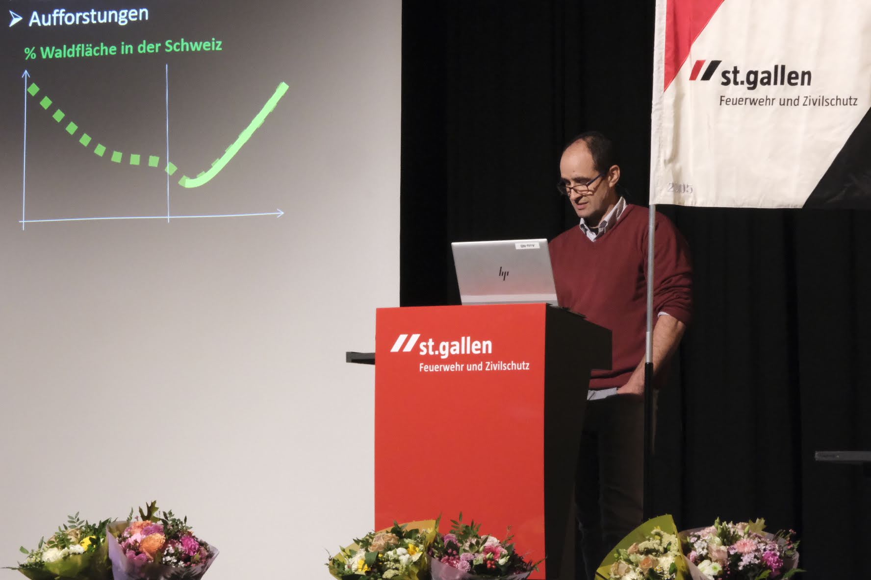 Dabei haben wir einen Blick zurückgeworfen, auf das ereignisreiche Jahr. Das sanierte Betriebsgebäude an der Notkerstrasse konnte wieder bezogen werden und die Angehörigen von Feuerwehr und Zivilschutz St.Gallen haben intensive Übungen durchgeführt. Ausserdem gab es einen kleinen Ausblick auf das Jahr 2025, in dem unter anderem der Tag der offenen Tore am 26. April stattfindet. In einer kleinen Serie zeigt Kommandant Christian Isler aktuell auf, welche prägenden Einsätze in seinen letzten 35 Jahren stattgefunden haben. Zum Schluss folgte ein Einblick in die Veränderungen im Alpenraum durch Frank Krumm mit anschliessendem Apéro und Austausch.