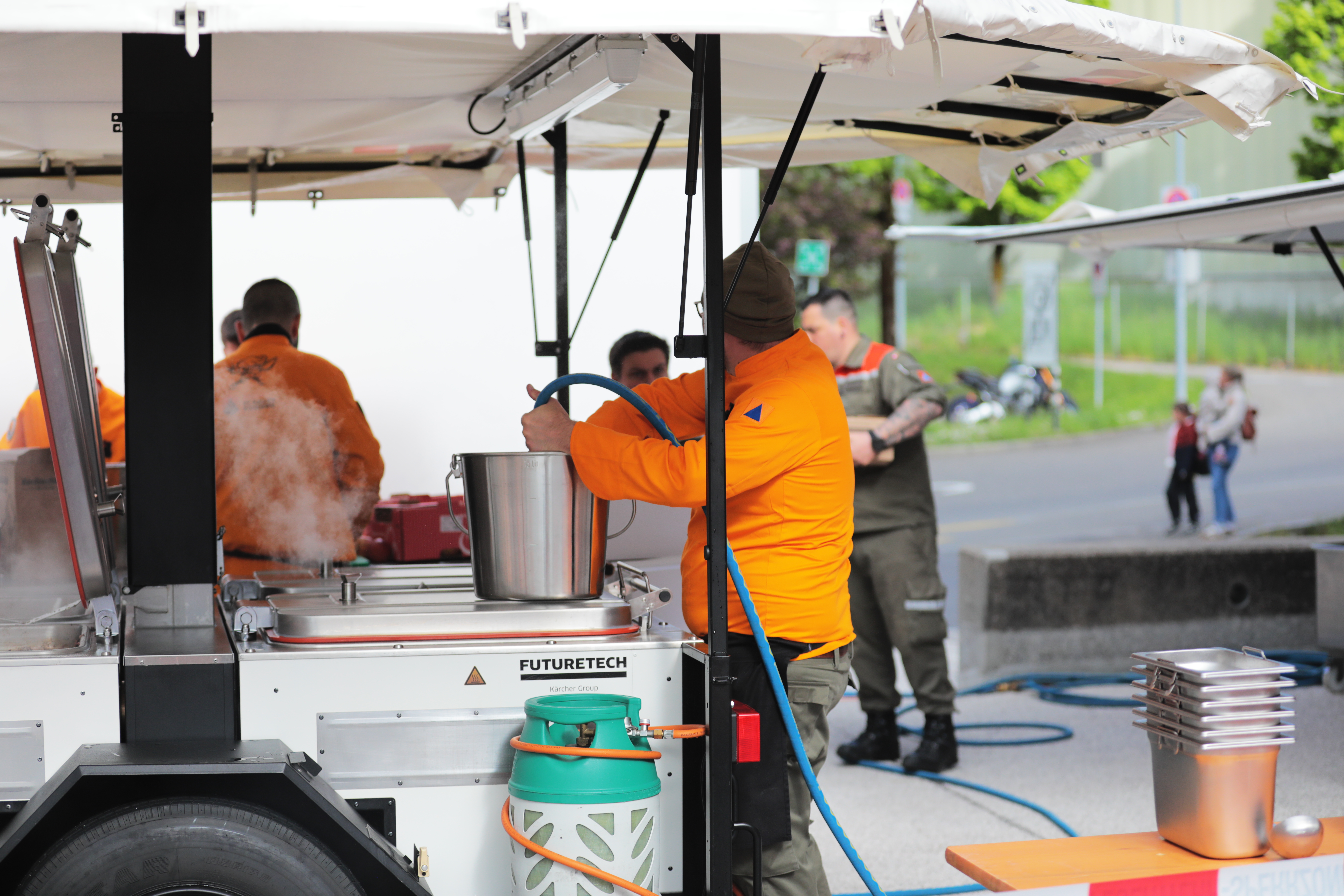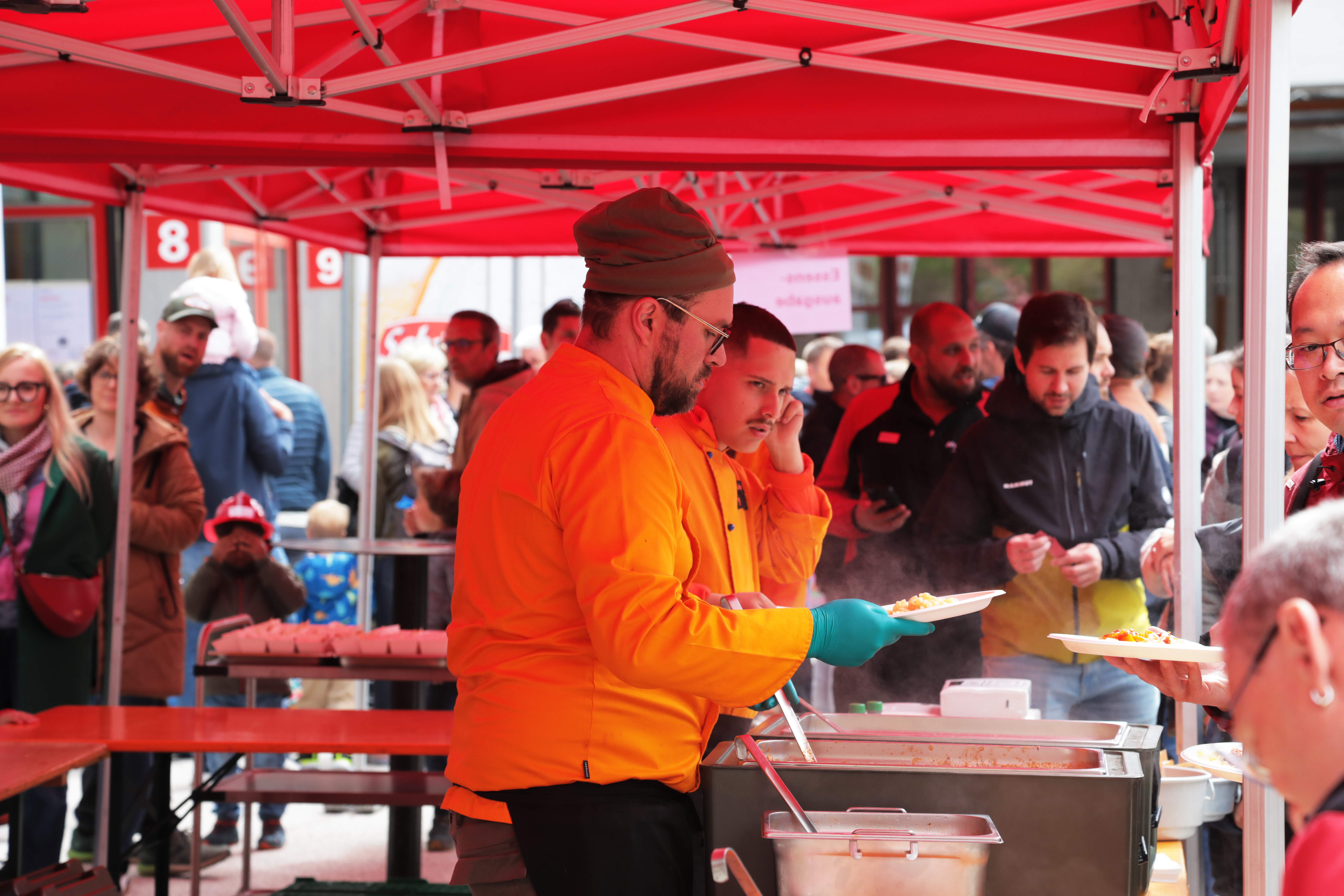 Auf dem Programm stand unter anderem ein Rundgang durch unser Betriebsgebäude, eine eindrucksvolle Einsatzübung sowie ein Wettbewerb mit tollen Preisen. In der Festwirtschaft konnten sich unsere Gäste stärken und die Eindrücke des Tages in Revue passieren lassen. Die Verpflegung wurde hierbei mit der fahrbaren Modulküche des Verpflegungszugs der Regionalen Zivilschutzorganisation St.Gallen-Bodensee kreiert.