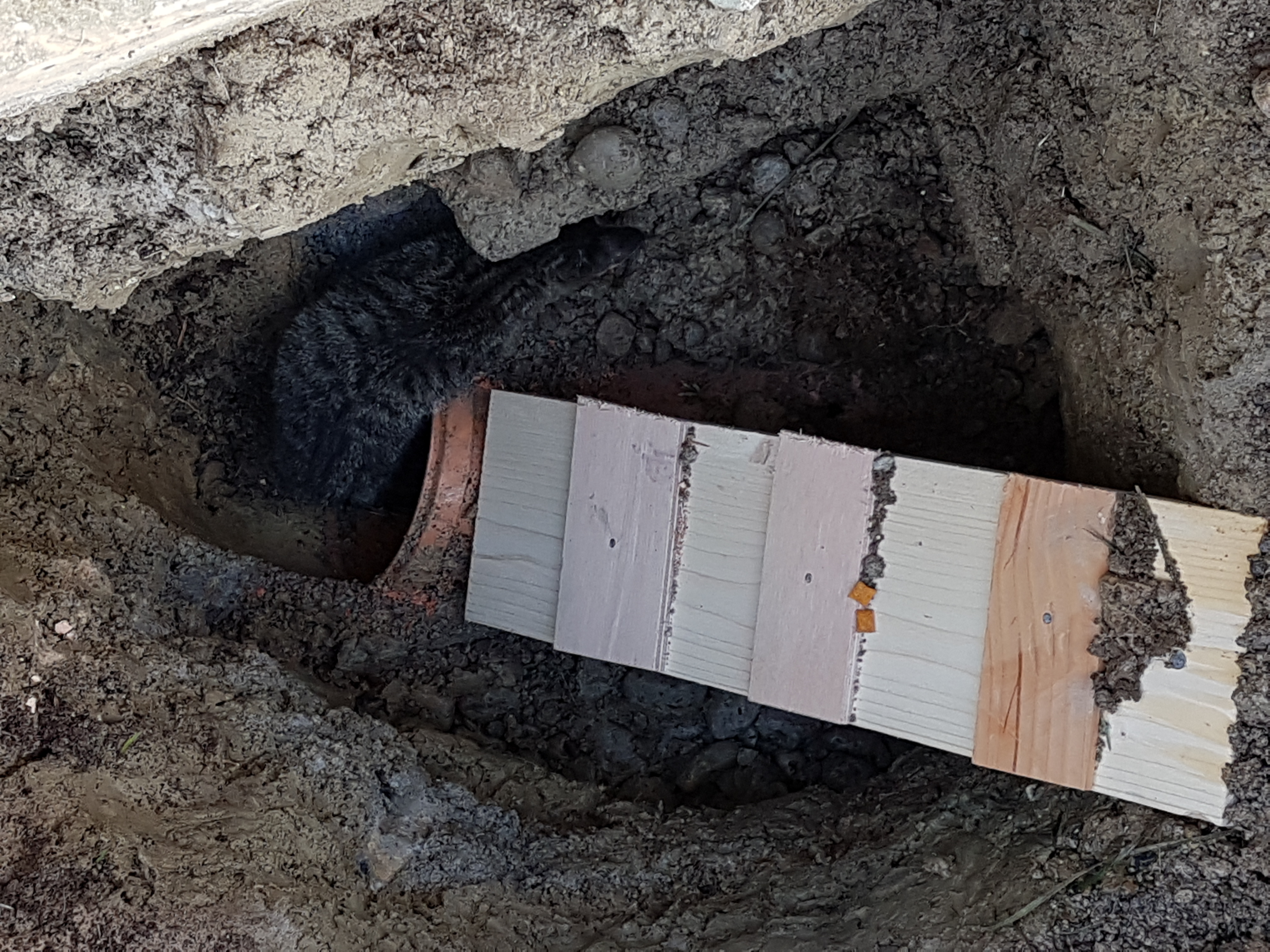 Zwei junge Kätzchen hatten sich in einem Steigrohr einer Tiefgaragenabfahrt verkrochen und konnten sich nicht mehr selbständig befreien.