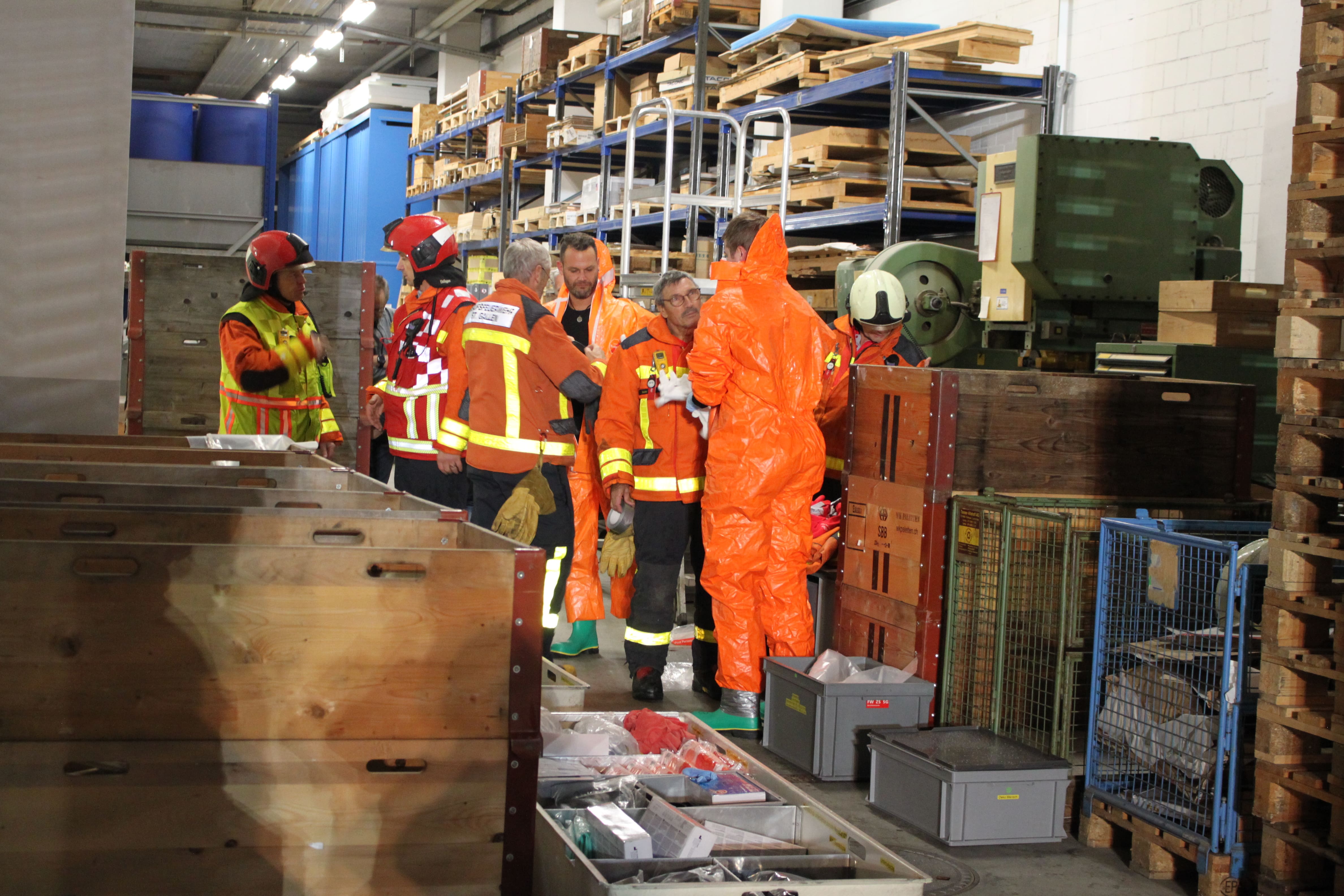 Zeitgleich wurde das ausgelaufene Medium mit Chemikalienbindetüchern aufgenommen. Die kontaminierten Tücher wurden in ein Dekofass gegeben und dem Betrieb zur Entsorgung übergeben.