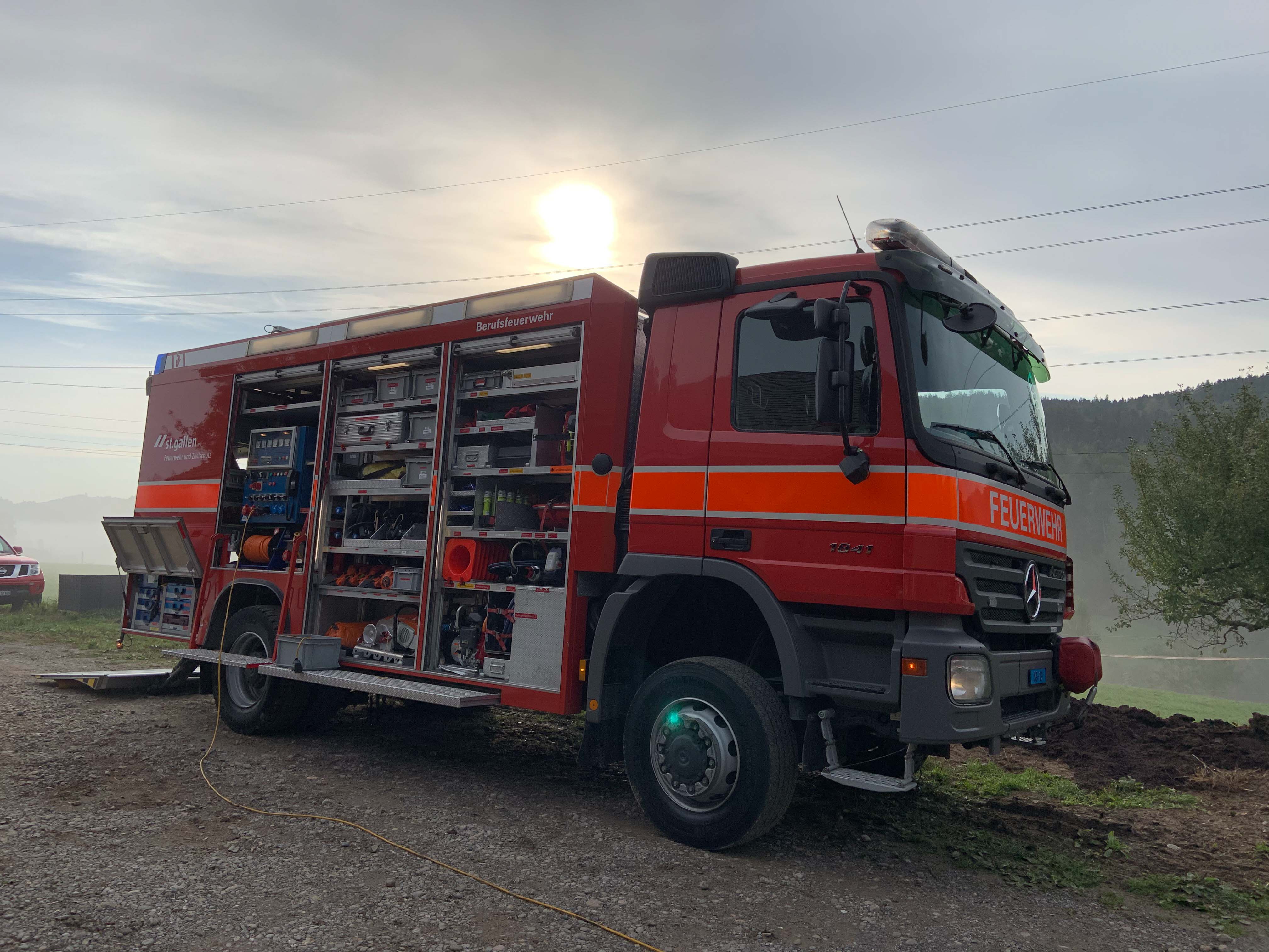 5 Angehörige der Berufsfeuerwehr standen während über 3.5 Stunden im Einsatz.