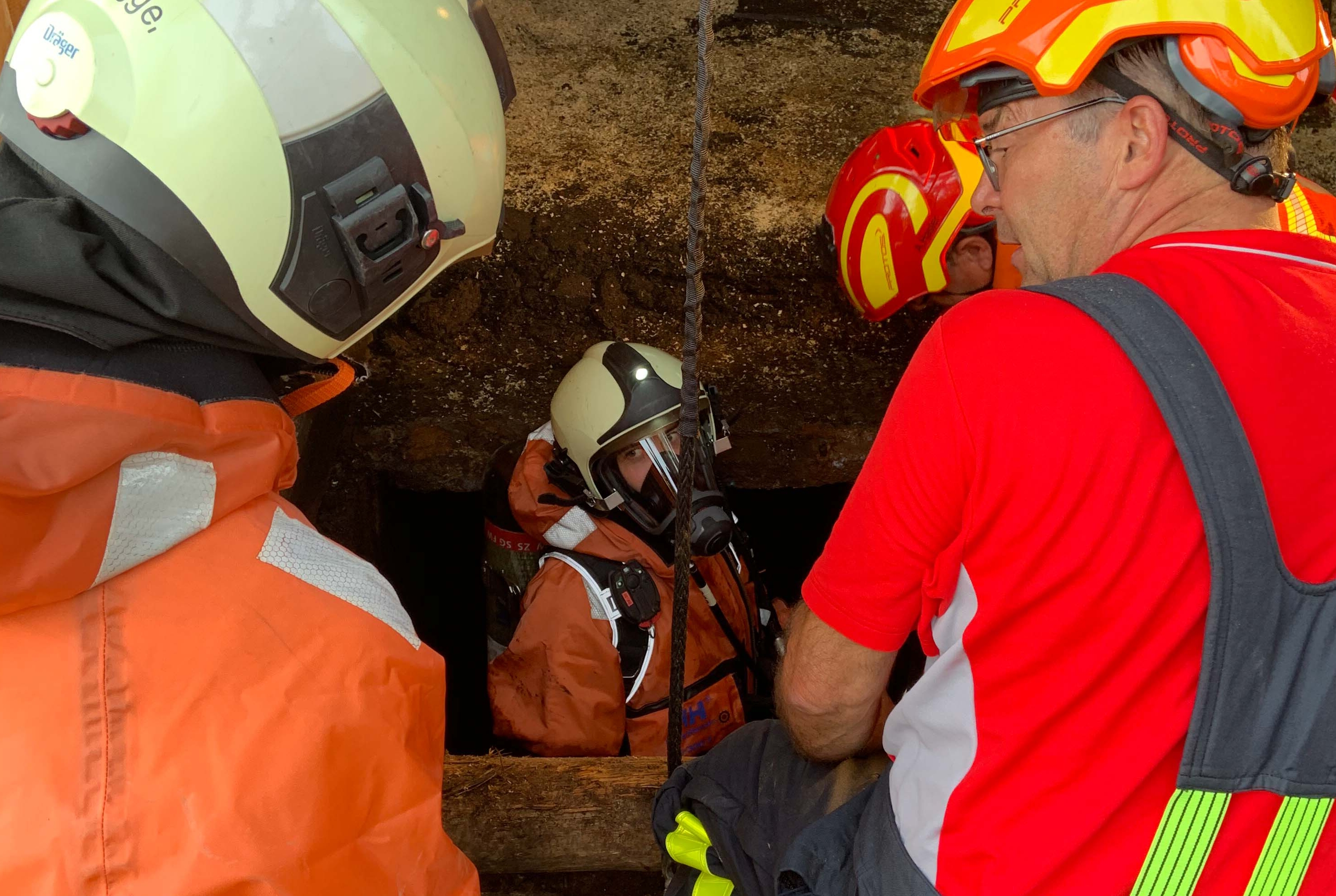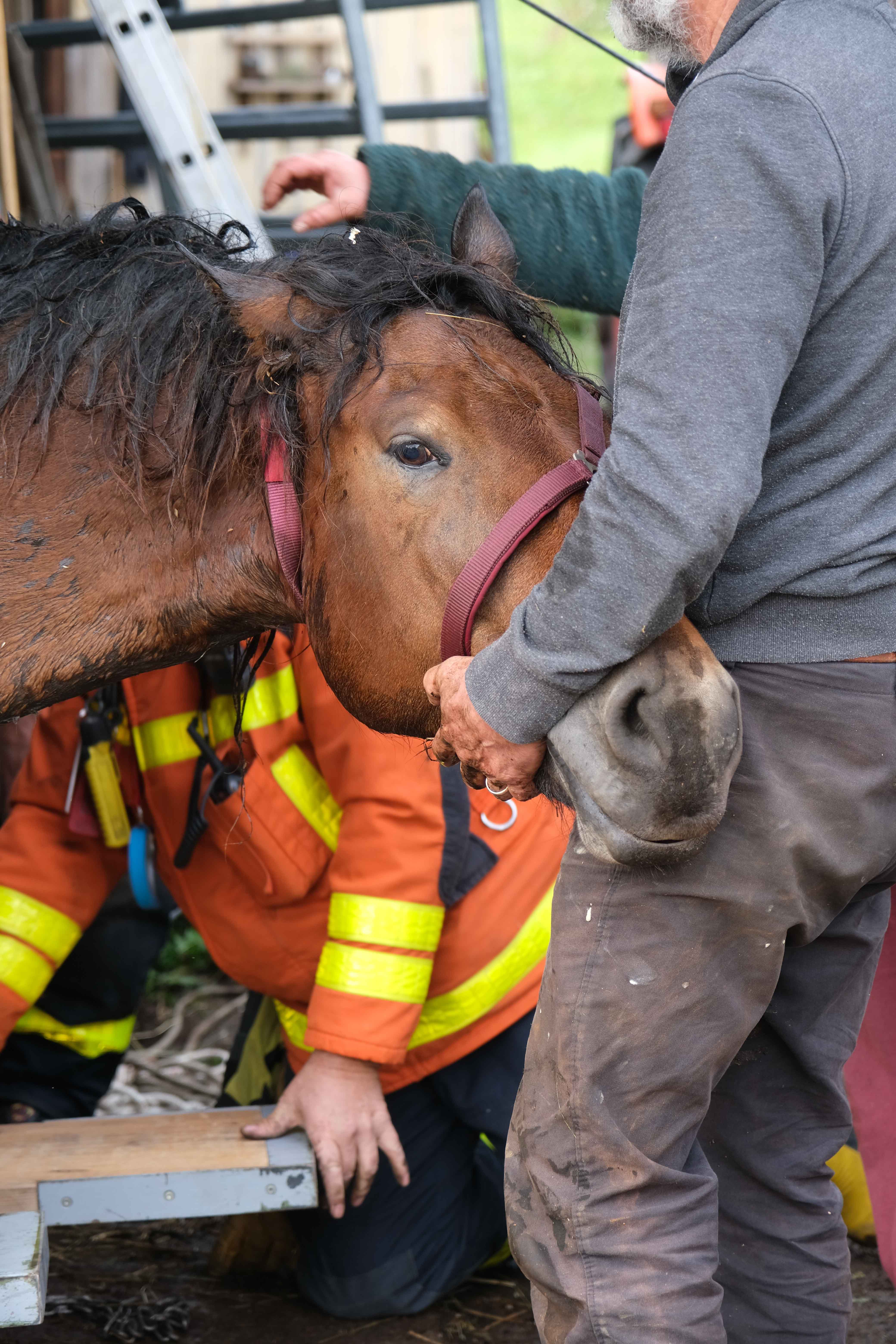 Am Donnerstagmorgen (01.10.2020) wurde die Berufsfeuerwehr zu einem Bauernhof gerufen. Ein Pferd sei in eine Jauchegrube gefallen. Kurz nach dem Eintreffen der Feuerwehr, war auch der Tierarzt vor Ort. Das Pferd wurde von den Einsatzkräften leicht sediert, damit sie ihm das Tierrettungsnetz umlegen konnten. Danach wurde das Tier mit zwei Winden und vereinten Kräften aus der Grube befreit. Das Pferd kam mit leichten Schürfwunden davon und wird sich vollständig erholen.