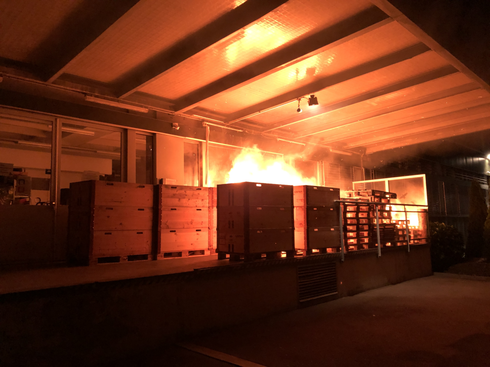 Am Dienstagabend (29.12.2020) wurde die Feuerwehr St.Gallen an die Rosengartenstrasse zu einem Lager gerufen. Beim Eintreffen der Einsatzkräfte standen dort mehrere Paletten in Brand. Unter Atemschutz und mittels Schnellangriff konnte die Berufsfeuerwehr den Brand löschen. Danach wurde der Bereich mit der Wärmebildkamera nach Glutnestern abgesucht. Der angrenzende Lagerraum wurde mit dem Elektrolüfter entraucht und kontrolliert. Durch die Hitze des Brandes sind zwei Scheiben des Lagerraums zersprungen. Diese wurden dann von der Feuerwehr mit Spanplatten verschlossen.