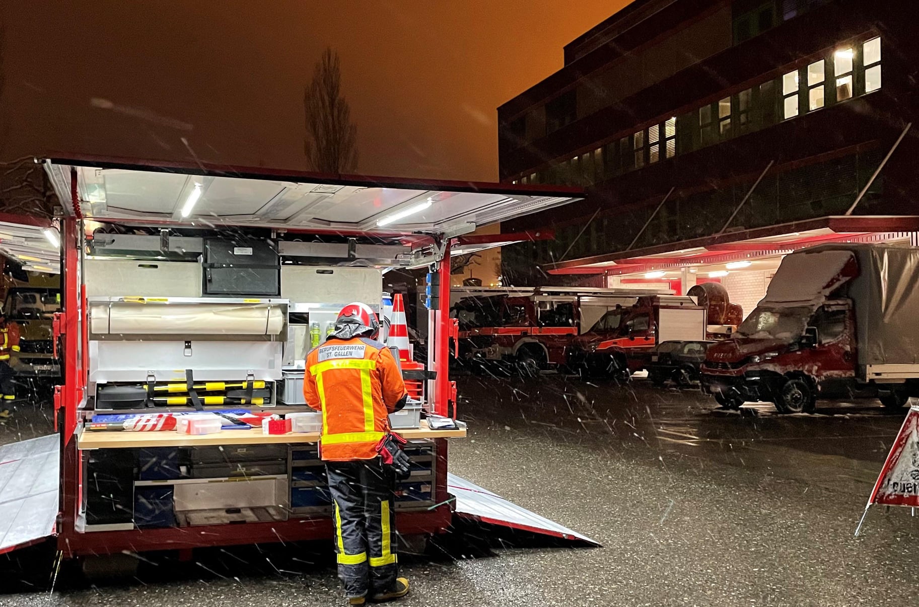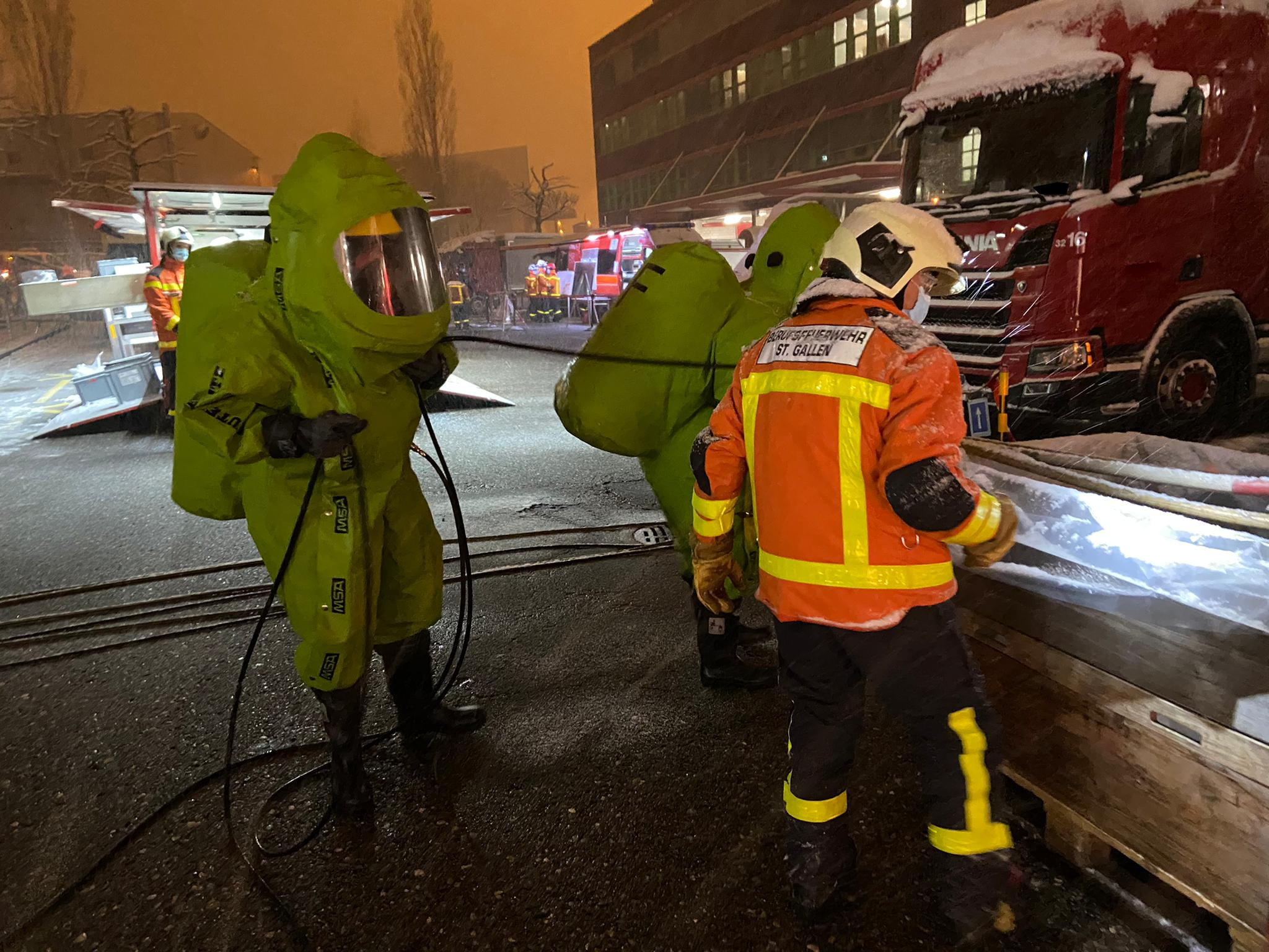 Zur Bewältigung des Einsatzes wurde die Berufsfeuerwehr, die Milizfeuerwehr Kompanie Ost, der Nachrichtenzug, eine Chemiefachberaterin und der Bereitschaftsdienstoffizier aufgeboten. Rund 40 Angehörige der Feuerwehr St.Gallen standen währen vier Stunden im Einsatz.