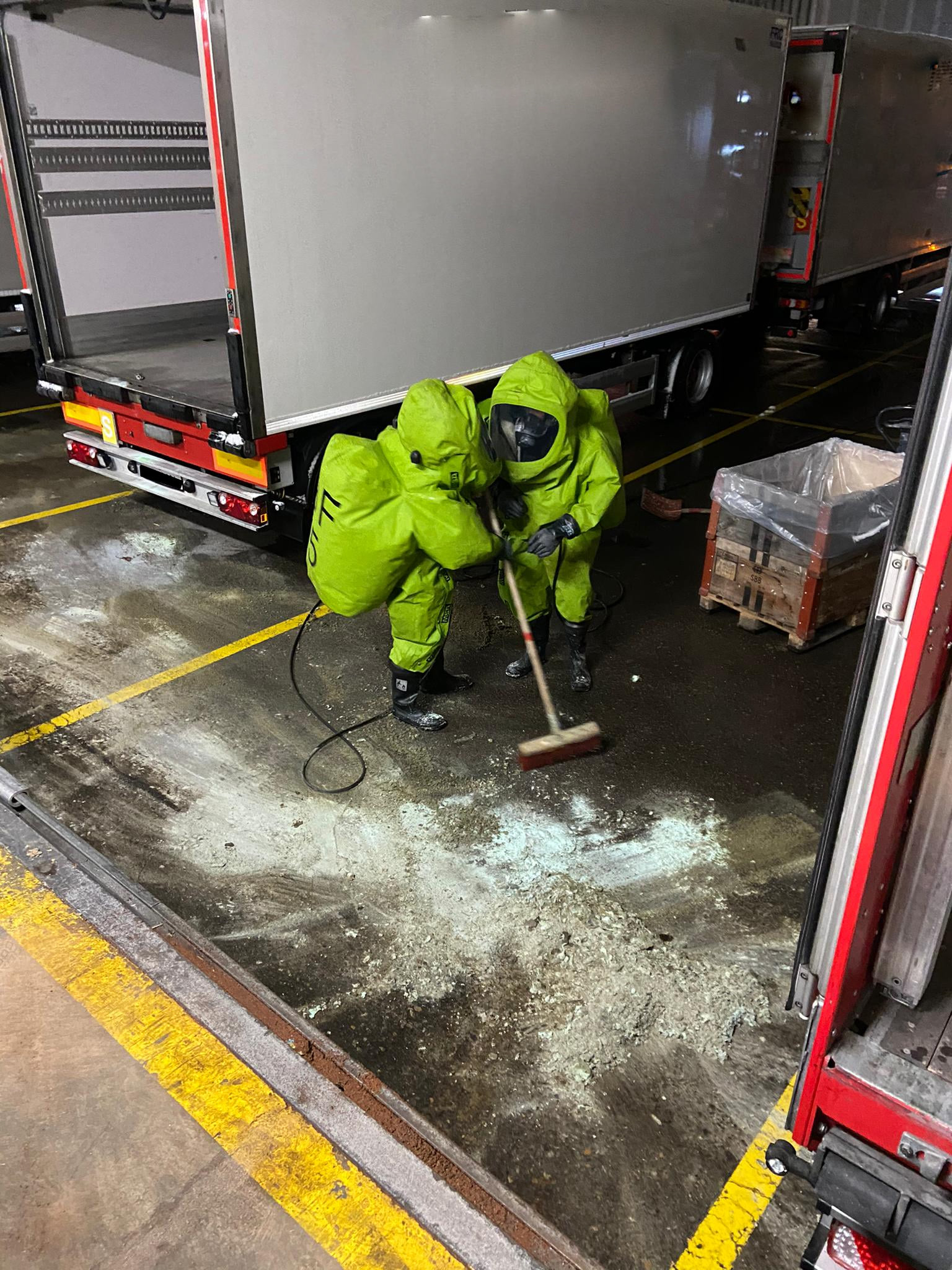 Mittels Chemiebinder wurde die Flüssigkeit durch Angehörige der Feuerwehr St.Gallen gebunden und zur Entsorgung bereitgestellt. Aufgrund der stark ätzenden Eigenschaften des ausgelaufenen Mediums, mussten die Arbeiten unter Vollschutz bewältigt werden. Nach dem Einsatz wurden die Einsatzkräfte und das Einsatzmaterial dekontaminiert.