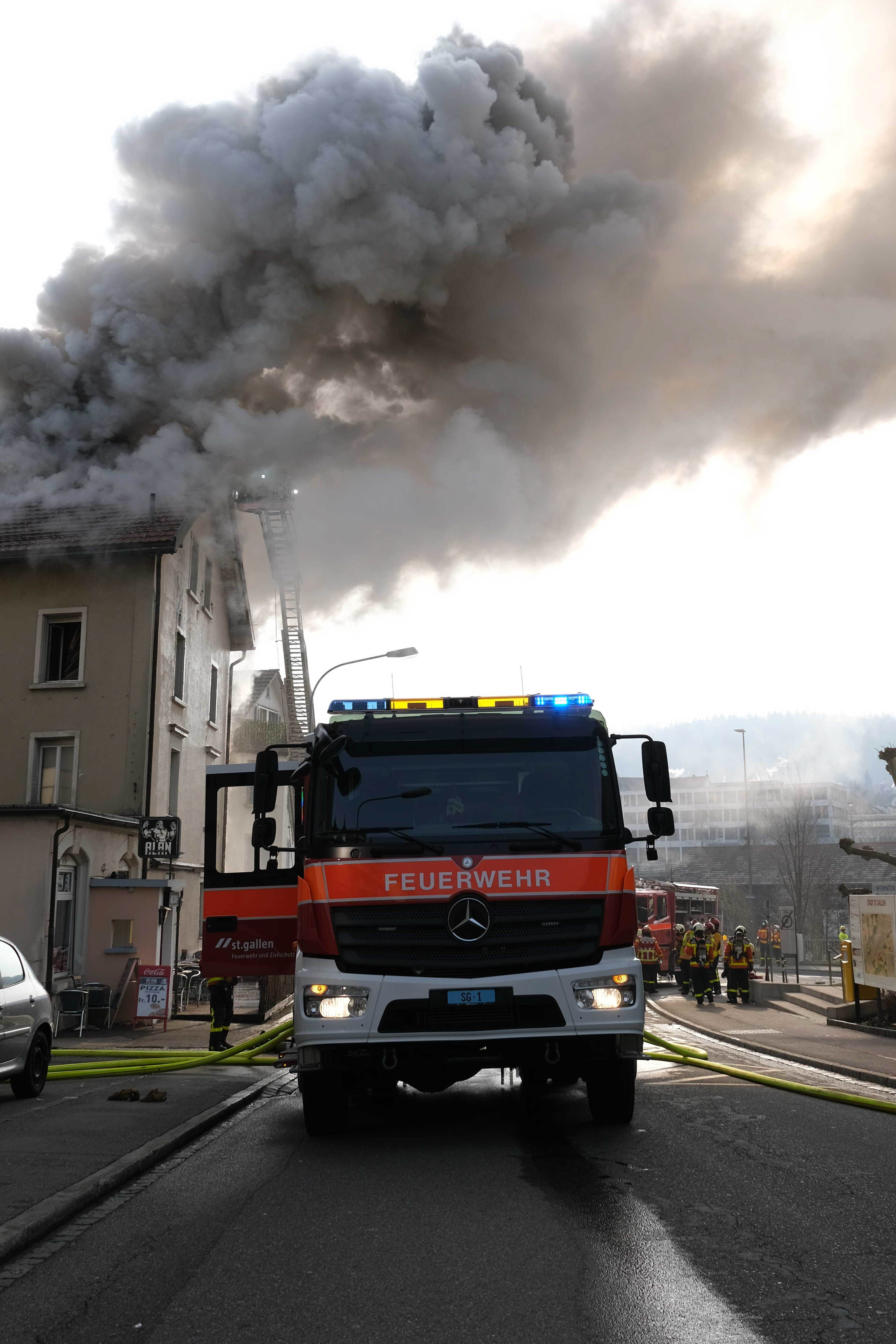 Am Dienstagmorgen, 9. März 2021, kam es an der Heimatstrasse aus noch unbekannten Gründen zu einem Hausbrand. Das Feuer breitete sich in kurzer Zeit vom 2. Obergeschoss bis ins 3. Obergeschoss und schlussendlich bis unter das Dach aus. Mehrere Atemschutz-Trupps der Feuerwehr St.Gallen drangen umgehend ins Gebäude vor, um es nach Menschen und Tieren abzusuchen. Eine leicht verletzte Person befand sich zu diesem Zeitpunkt noch im Treppenhaus des Gebäudes. Diese wurde durch einen Mitarbeiter der Berufsfeuerwehr nach draussen begleitet. Anschliessend wurde mit den Löscharbeiten begonnen. Die Löschtrupps der Berufs- und Milizfeuerwehr rückten unter Atemschutz mit Druckleitungen zu den brennenden Räumlichkeiten vor. Zudem bekämpften weitere Einsatzkräfte das sich ausbreitende Feuer vom Korb der Autodrehleiter aus. Um alle Glutnester zu löschen, musste das Dach teilweise abgedeckt und diverse Wände mit Äxten geöffnet werden. Erschwerend kam hinzu, dass ein Nachbarhaus vom Übergreifen des Feuers geschützt werden musste, was den Einsatzkräften jedoch gelang.