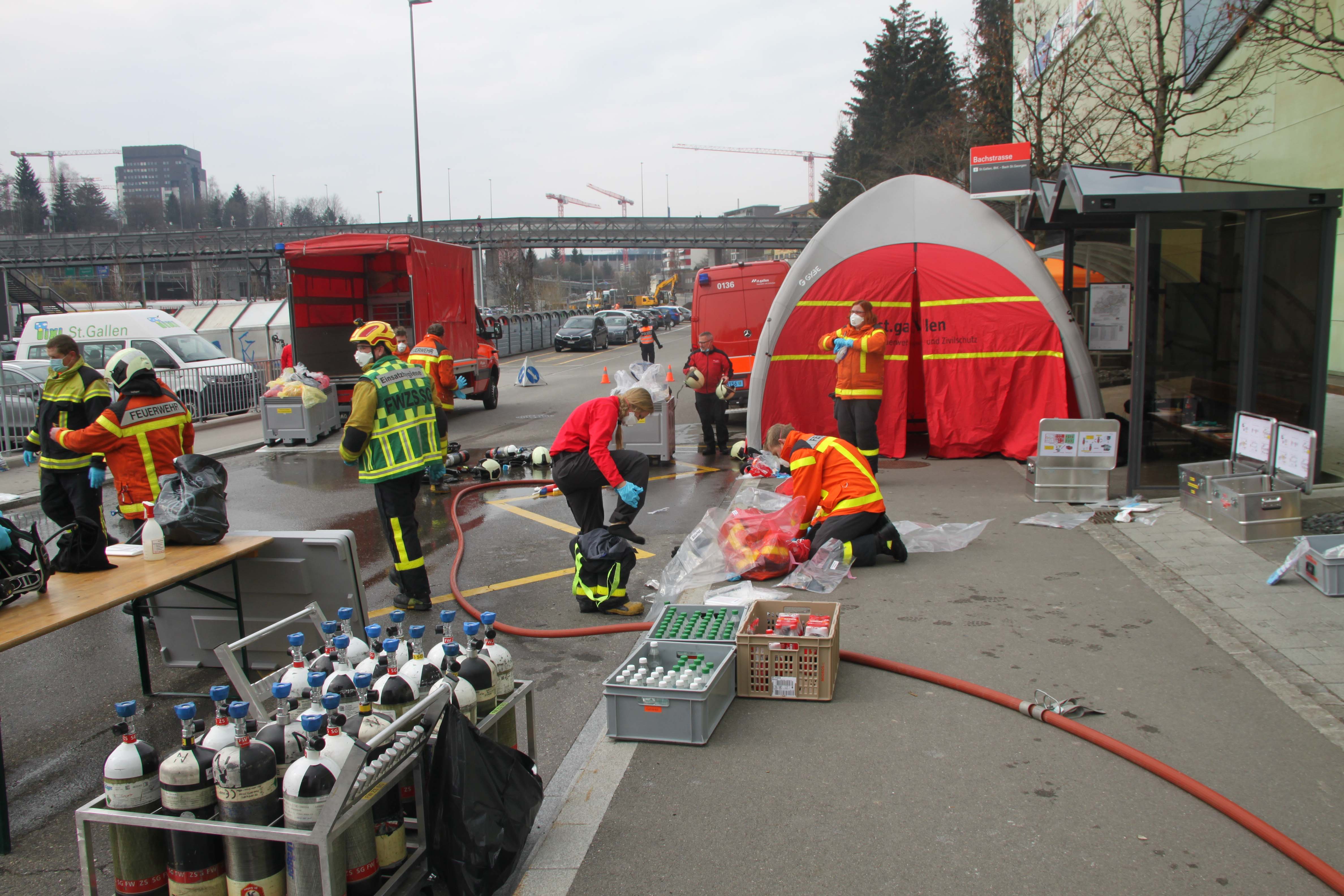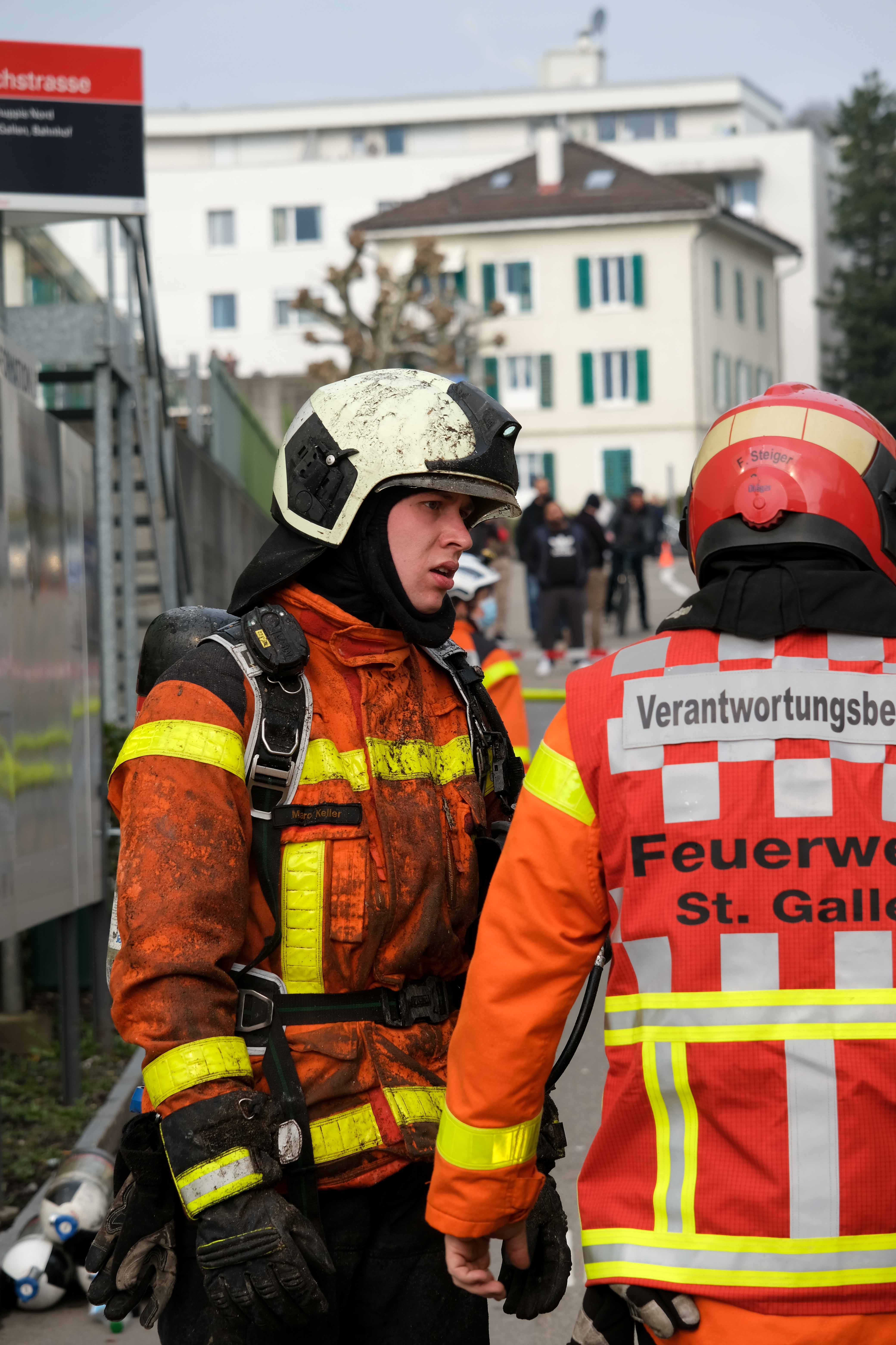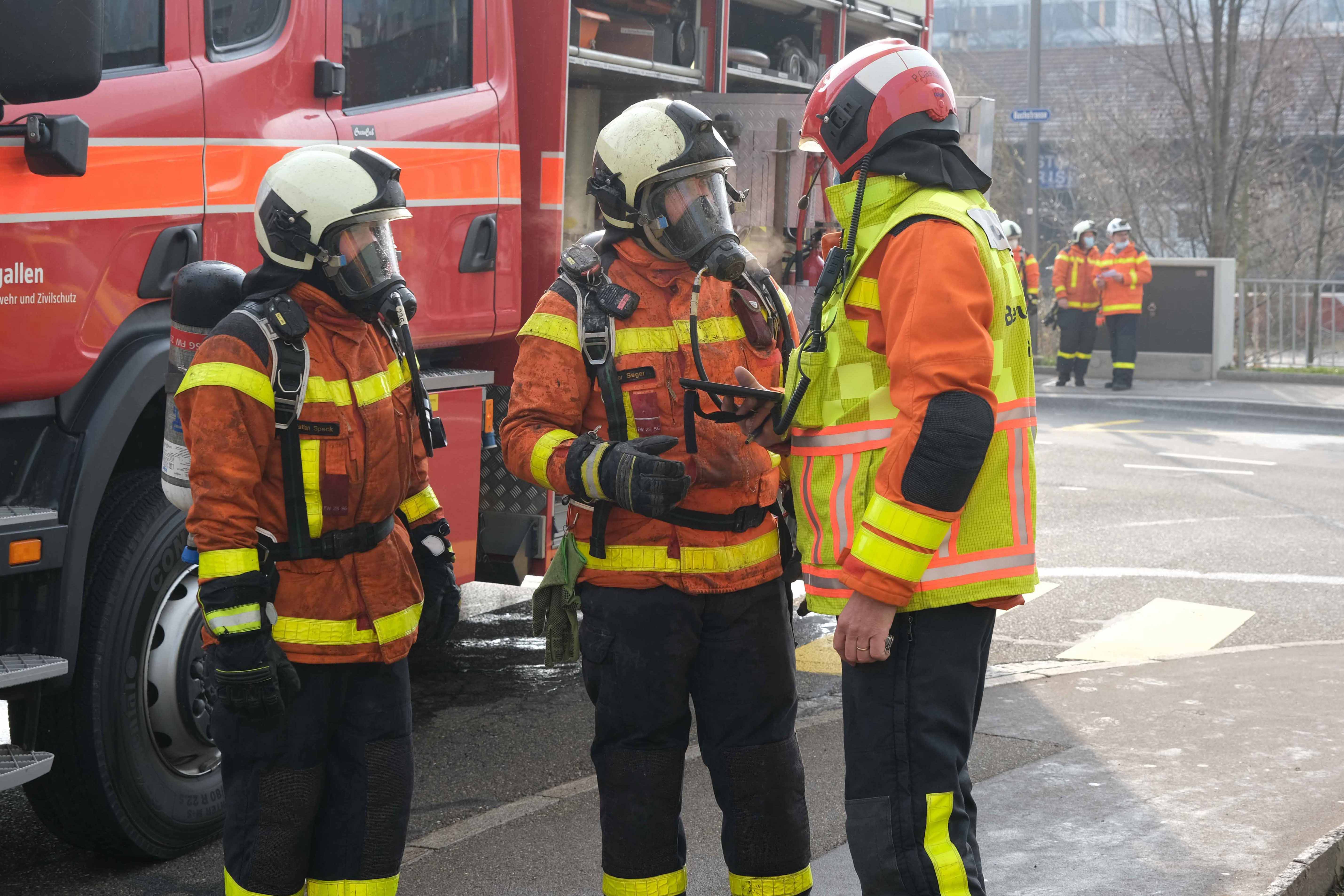 Im Einsatz standen nebst den Einsatzkräften der Berufsfeuerwehr auch die Milizfeuerwehr-Kompanien Ost und West sowie der Nachrichten- und Sanitätszug der Stabskompanie. Zudem wurde das Atemschutzfahrzeug Gaiserwald und der Atemschutz-Notfalltrupp aufgeboten. Insgesamt bewältigten rund 56 Einsatzkräfte der Feuerwehr St.Gallen den Brand. Der Einsatz dauerte 4 1/2 Stunden.