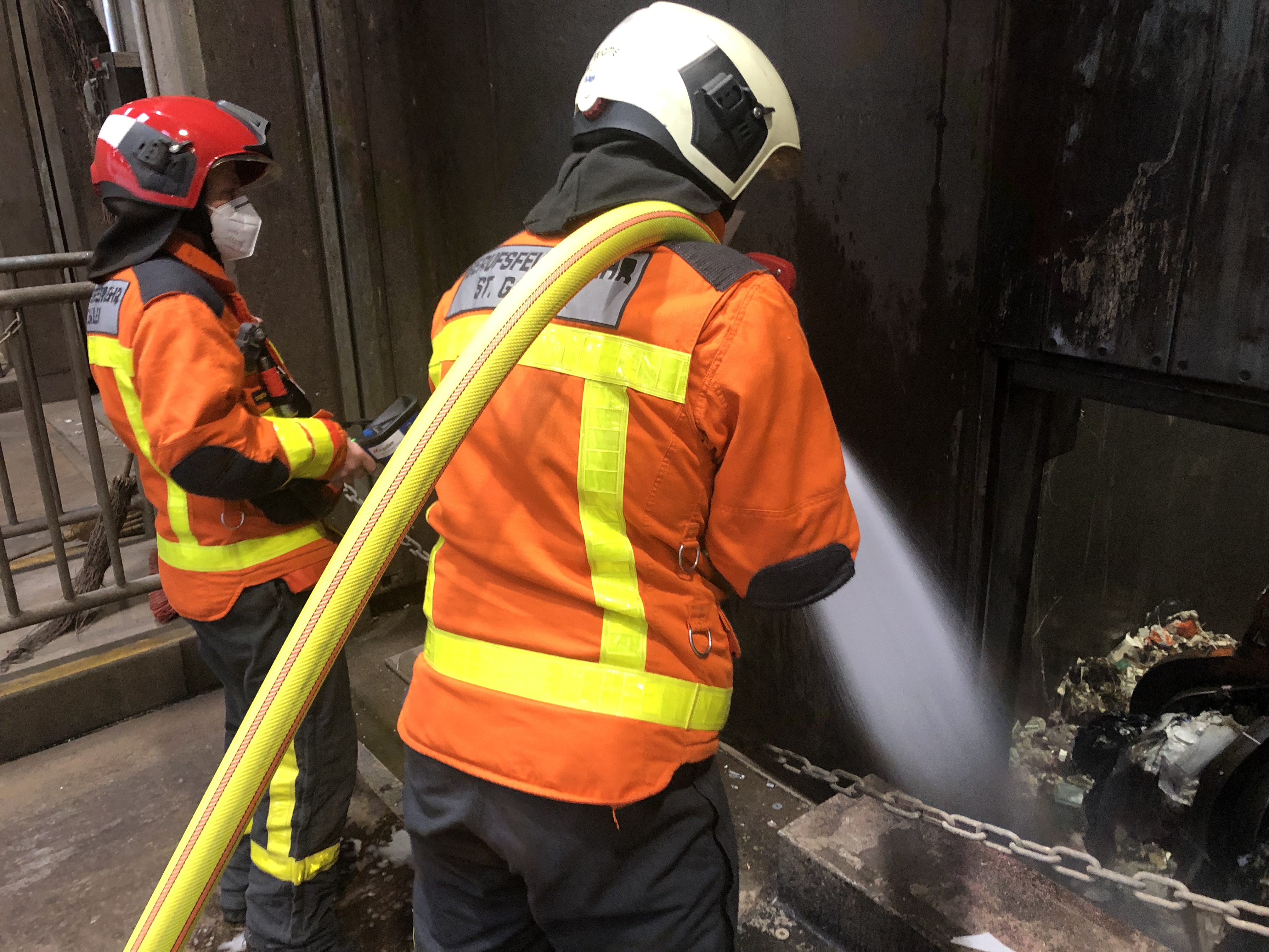 Am Freitagmorgen (08.10.21) kam es in einem Bunker des Kehrichtheizkraftwerkes St.Gallen zu einem Brand. Aufgrund der starken Rauchentwicklung wurde die Löschanlage des Gebäudes ausgelöst. Als die Einsatzkräfte der Berufsfeuerwehr am Einsatzort eintrafen, fanden sie ein offenes Feuer vor. Mittels Druckleitung wurde der Brand unter Atemschutz bekämpft. Anschliessend wurden die Räume entraucht und der Kehricht mittels Greifer des Kehrichtheizkrafwerks nach Glutnestern abgesucht.